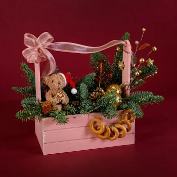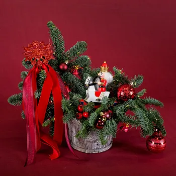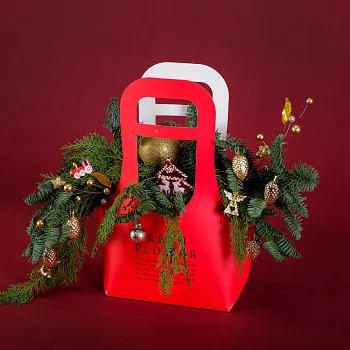 Классические новогодние букеты: Включают в себя сочетание хвои, шишек и ярких рождественских украшений. Такие букеты создают атмосферу традиционного праздника и уюта. «В каждой веточке – дух Рождества».