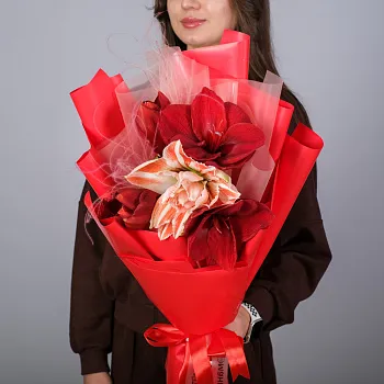 Заказать on-line и купить цветы недорого оптом или в розницу из раздела «Букеты с амариллисами», а также оформить заказ интересующего Вас букета можно через сайт либо по телефону 8 800 550 10 72.