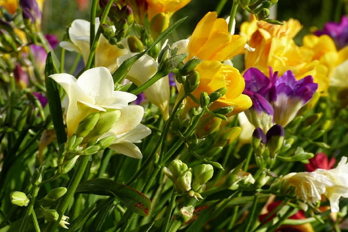 Место: Лучше всего фрезии будут чувствовать себя на солнечных участках с защитой от сильных ветров, которые могут повредить их хрупкие цветы. Важно, чтобы место было защищено от прямых солнечных лучей в самые жаркие часы дня.
