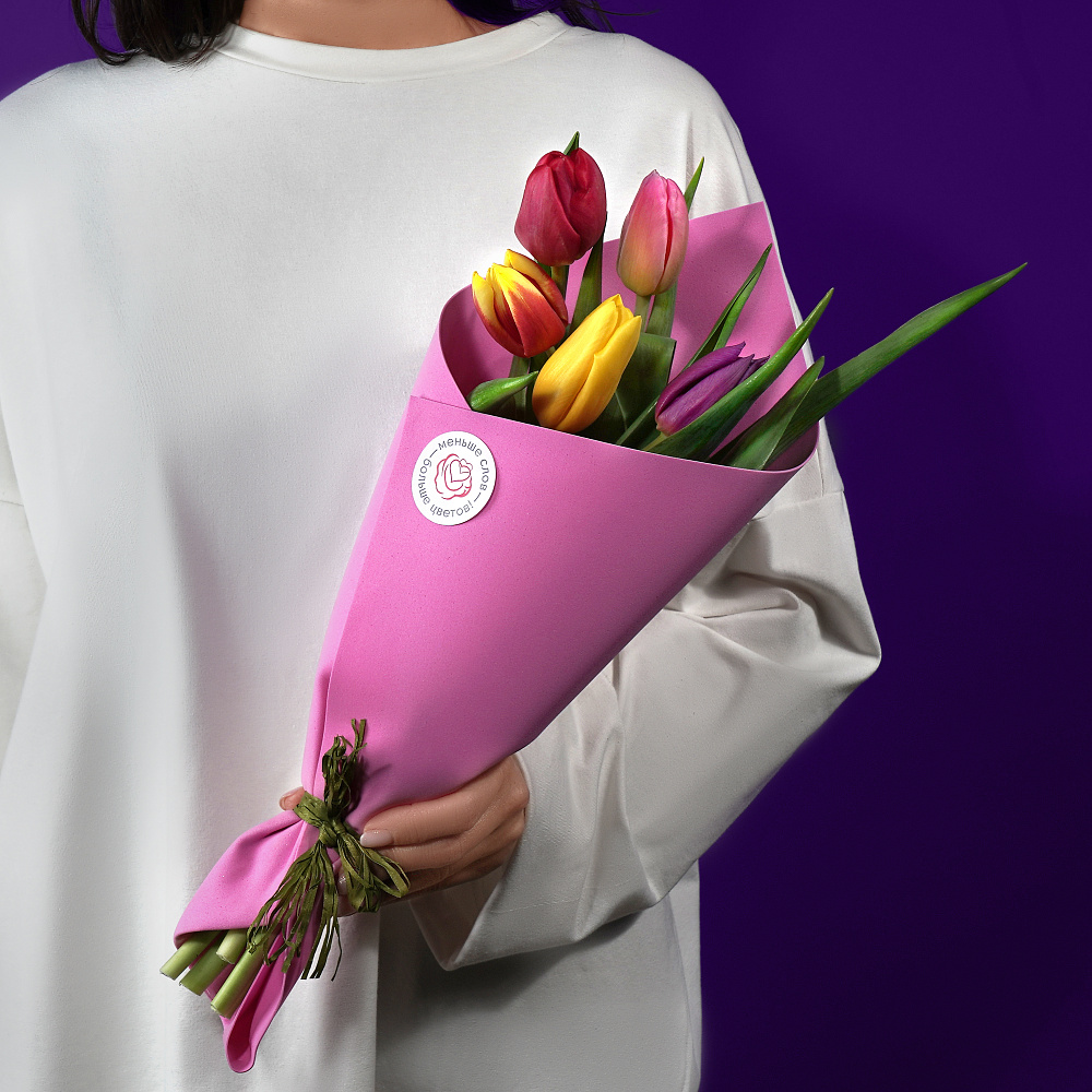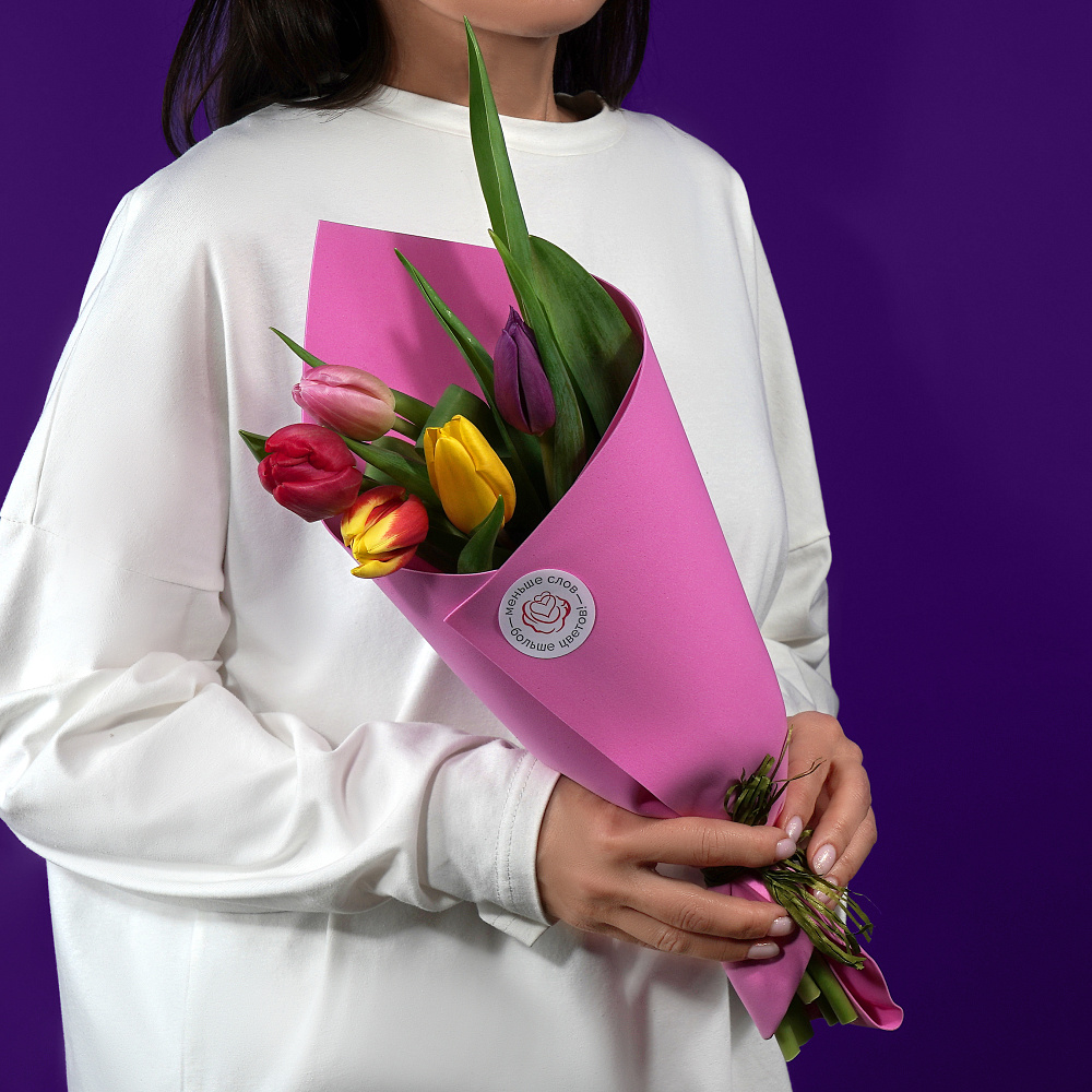 Понравилось качество тюльпанов: бутоны плотные, цветы не помялись при доставке. Даже через несколько дней букет выглядел свежим и красивым.