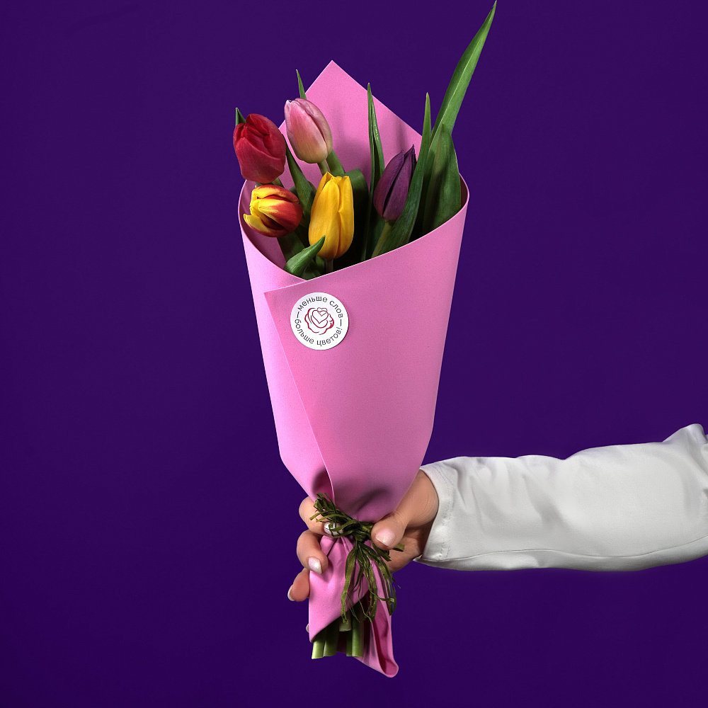Отзывы - Букет 5 тюльпанов микс в упаковке