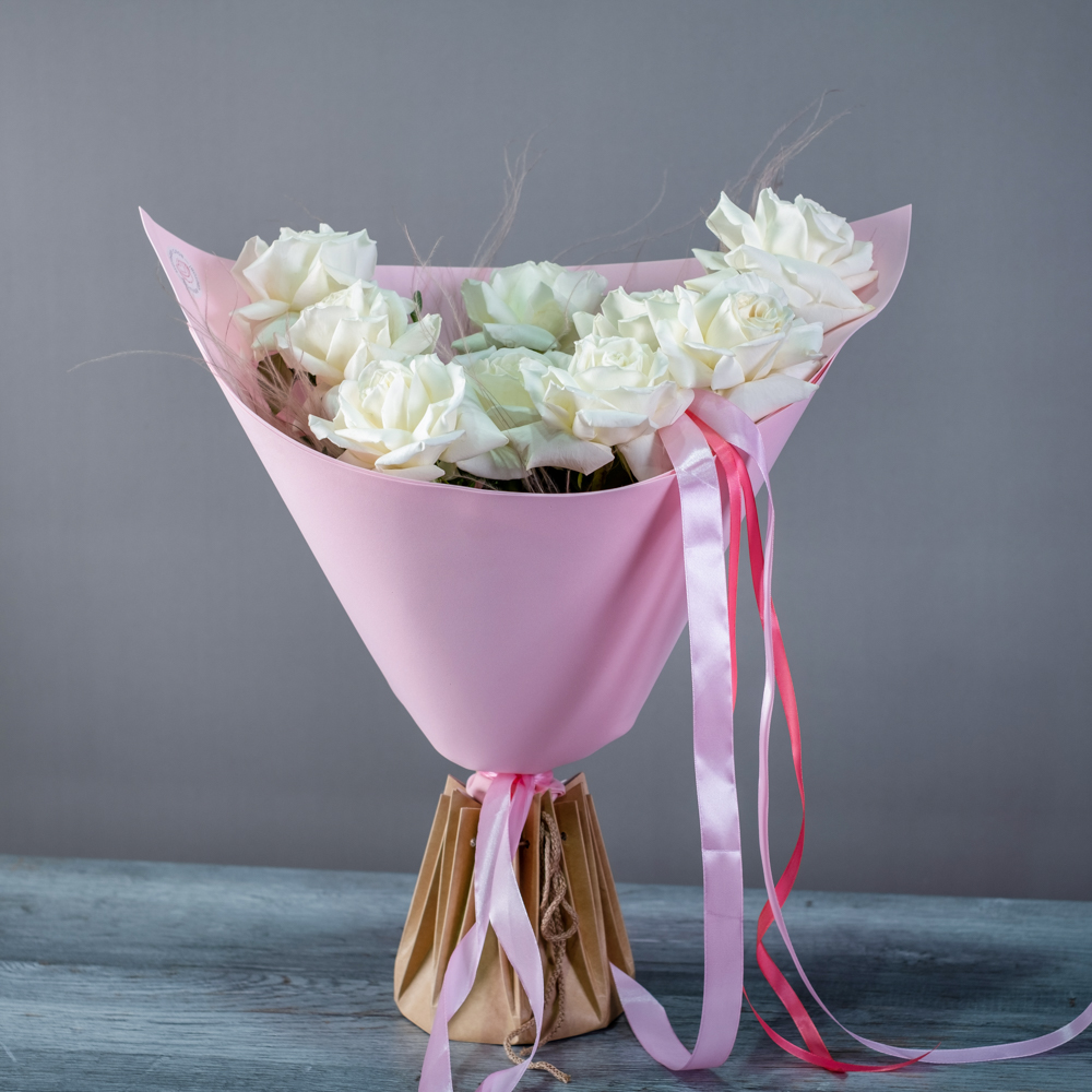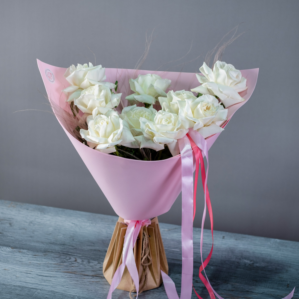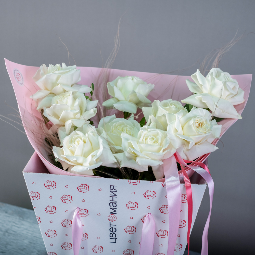 роза эквадор 9, пистач 3, ковыль, упаковка, лента, транспортировочная коробка, аквабокс