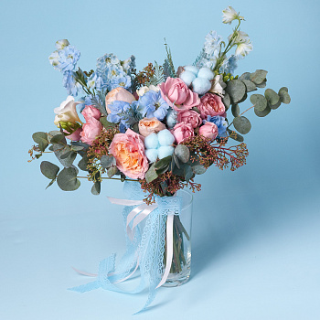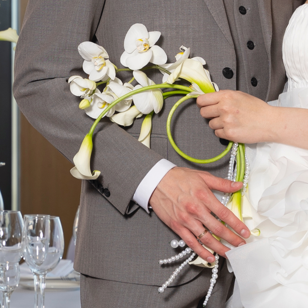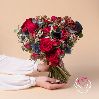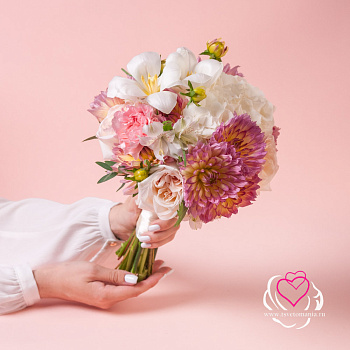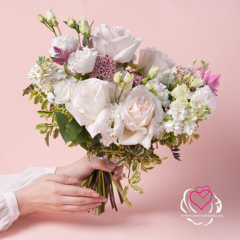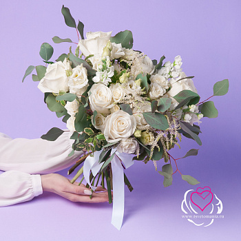 Заказ на свадебный букет принимается за 2 недели до даты события. К букету можно заказать бутоньерку за дополнительную стоимость - 700 рублей.