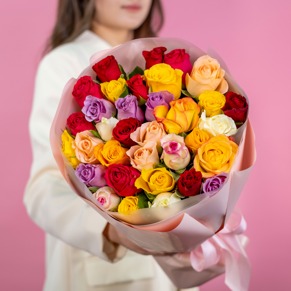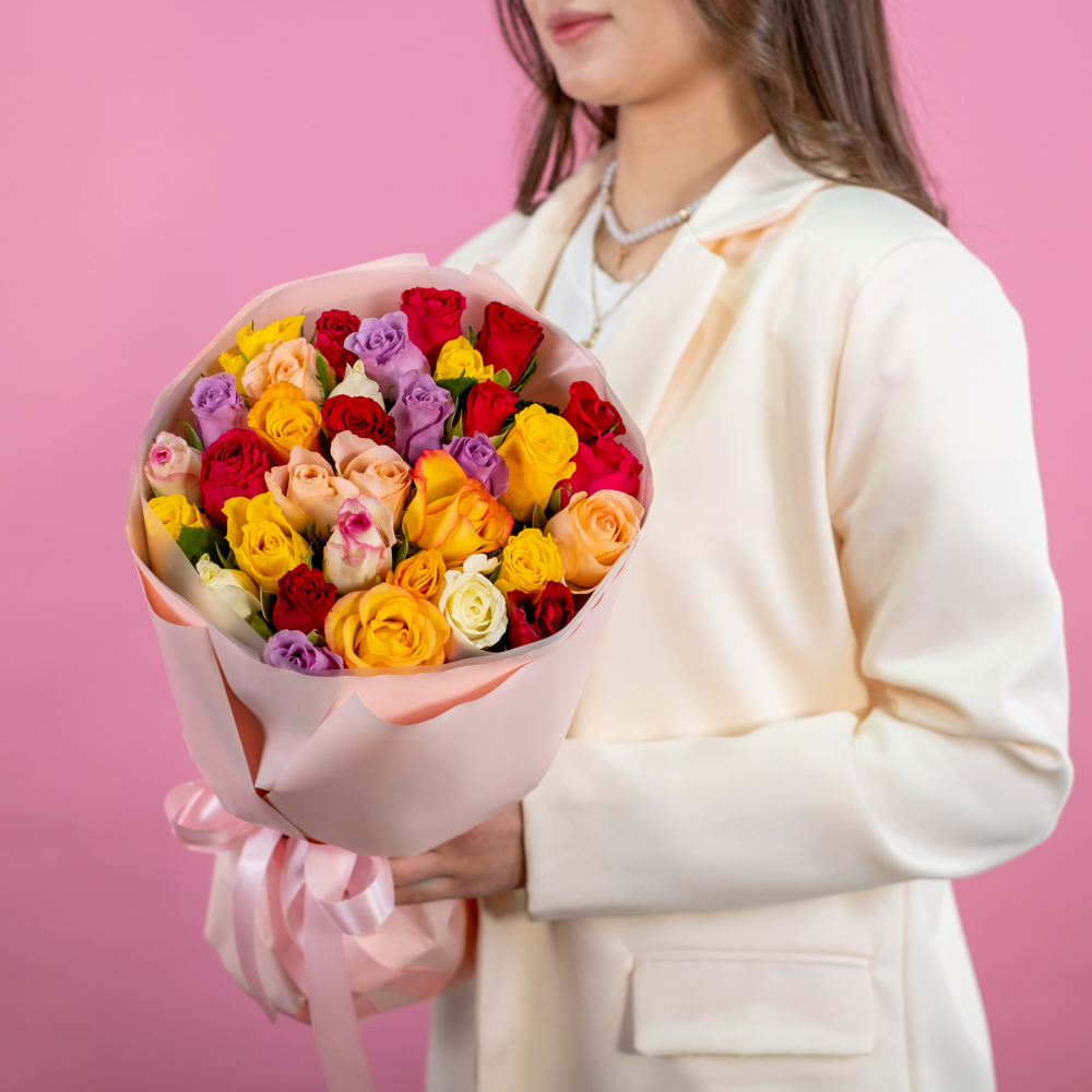Попросили собрать букет из роз разного цвета, все сделали на высшем уровне