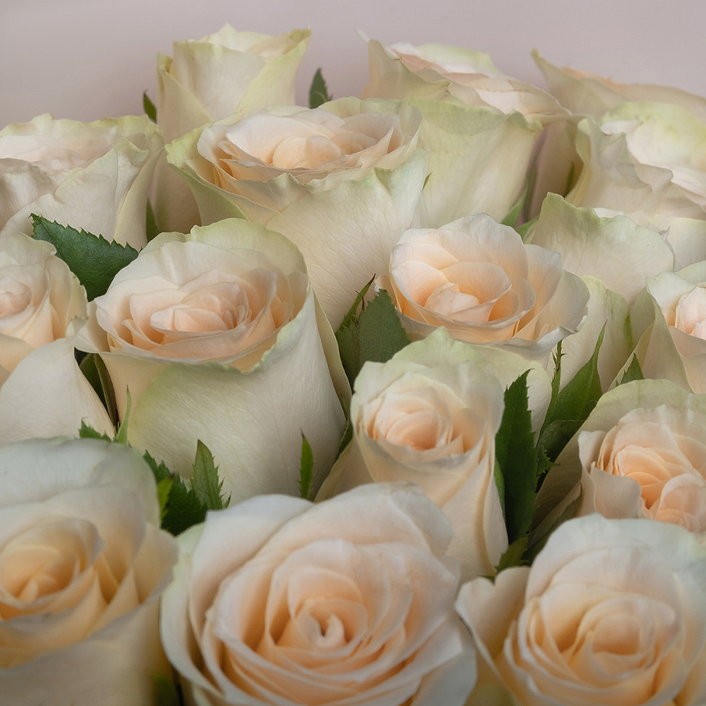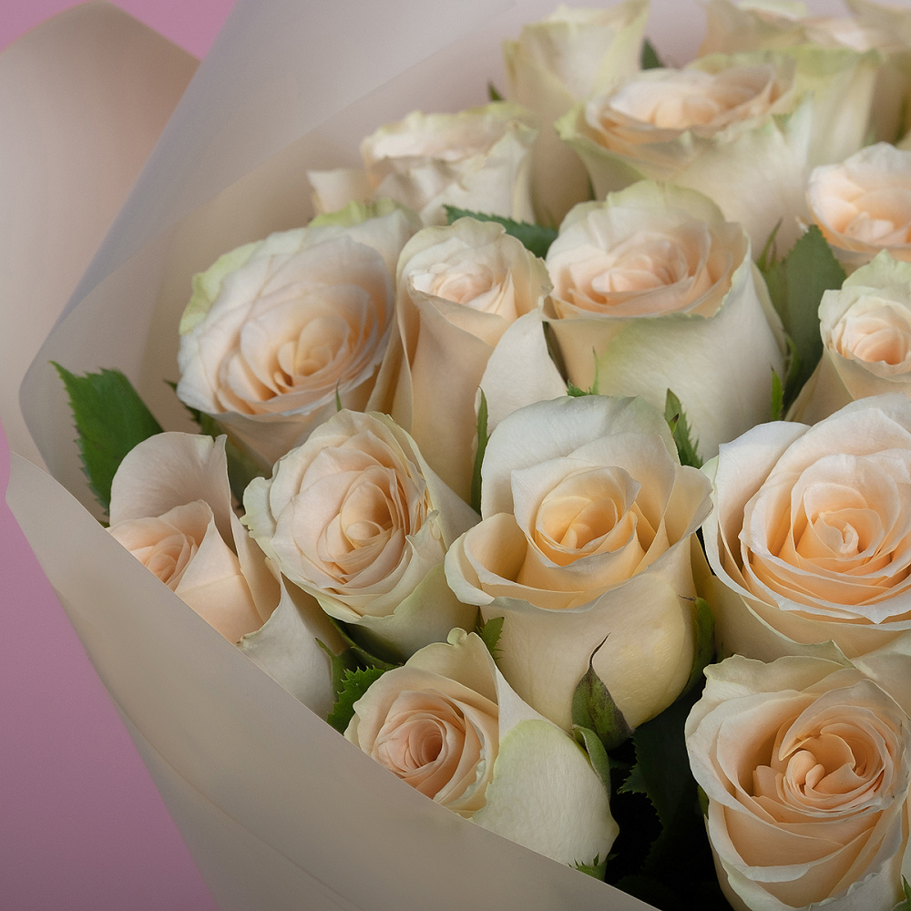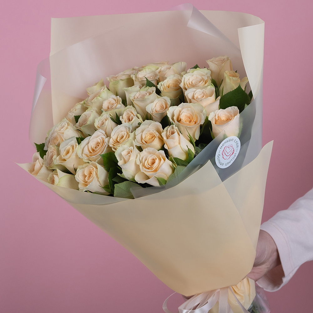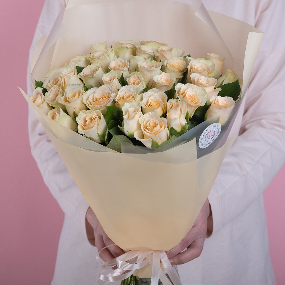 Состав букета: 35 кремовых роз (Кения), упаковка, лента