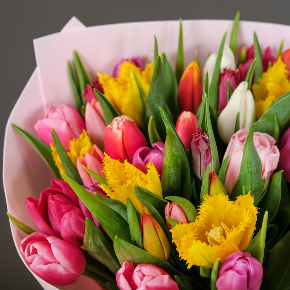 Потрясающий букет тюльпанов! Цветы свежие, ароматные, упаковка красивая. Доставка была быстрой и аккуратной. Получательница осталась очень довольна!