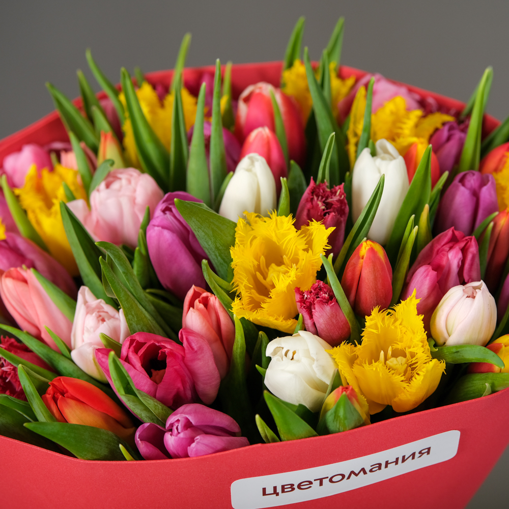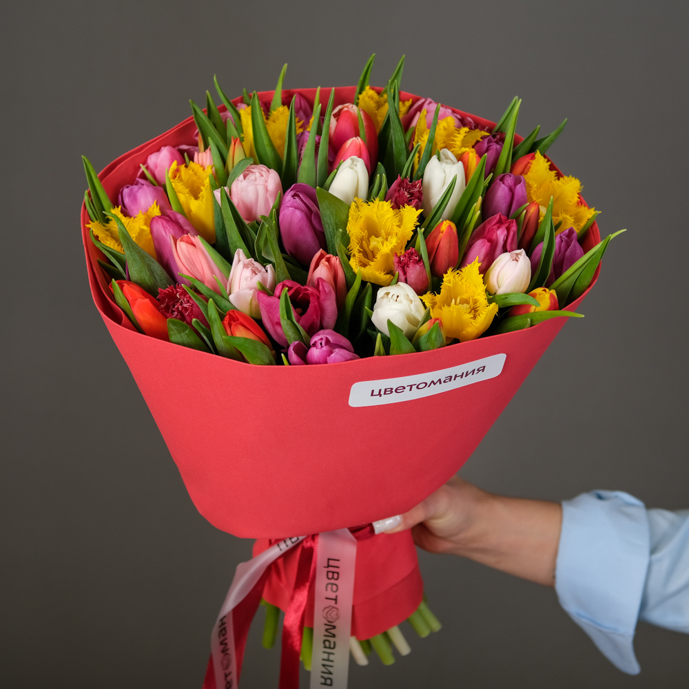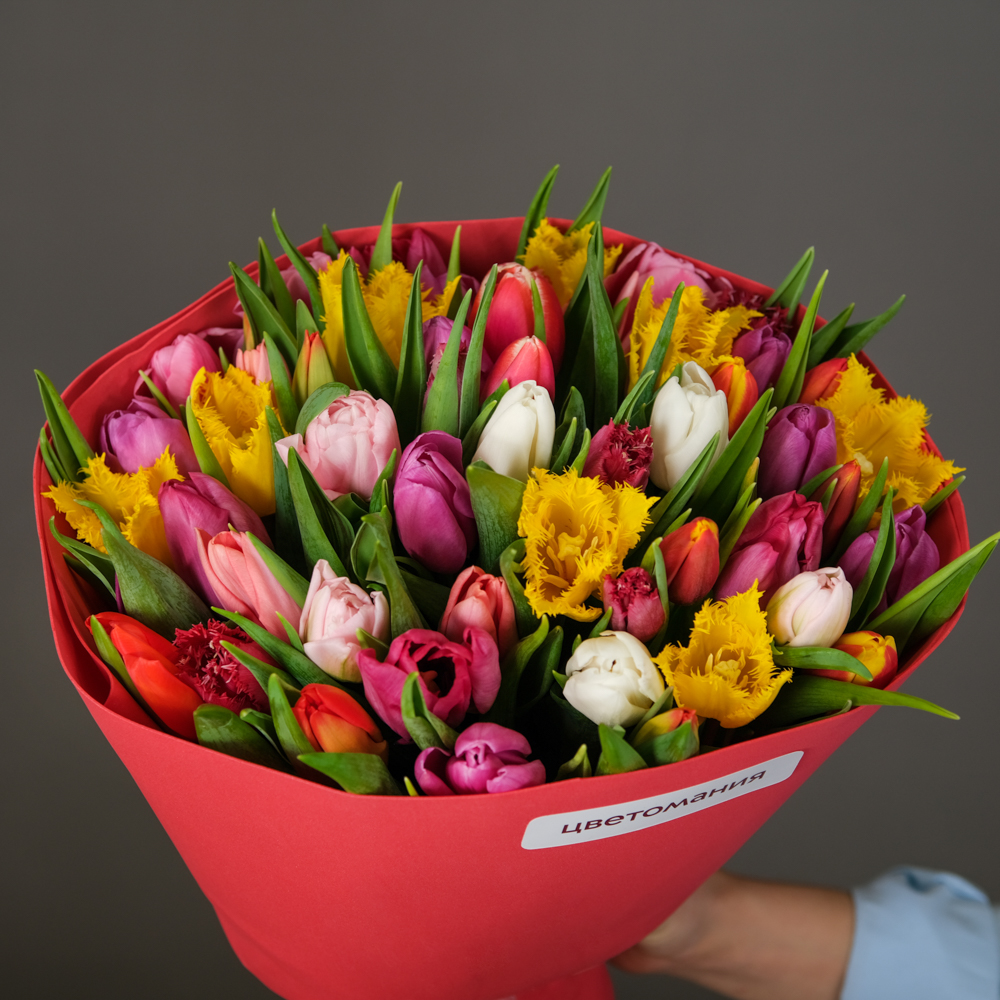 Тюльпаны просто волшебные! Букет был собран с любовью, все цветы ровные и свежие. Доставка вовремя, сервис на высоте. Спасибо за яркие эмоции!