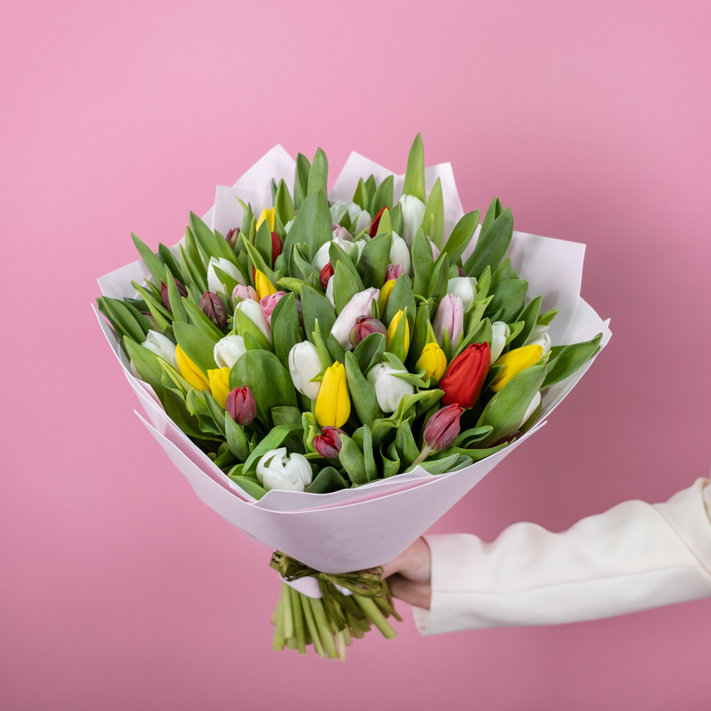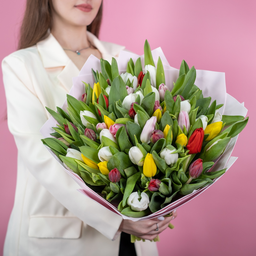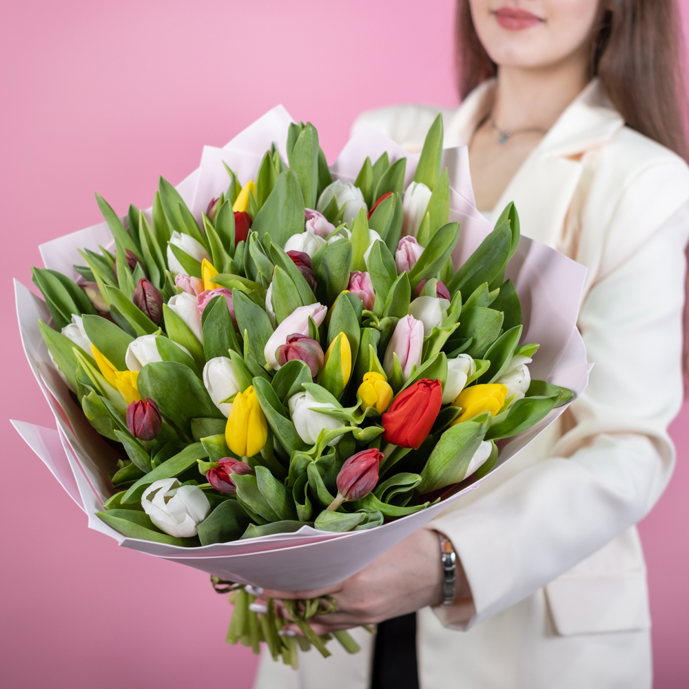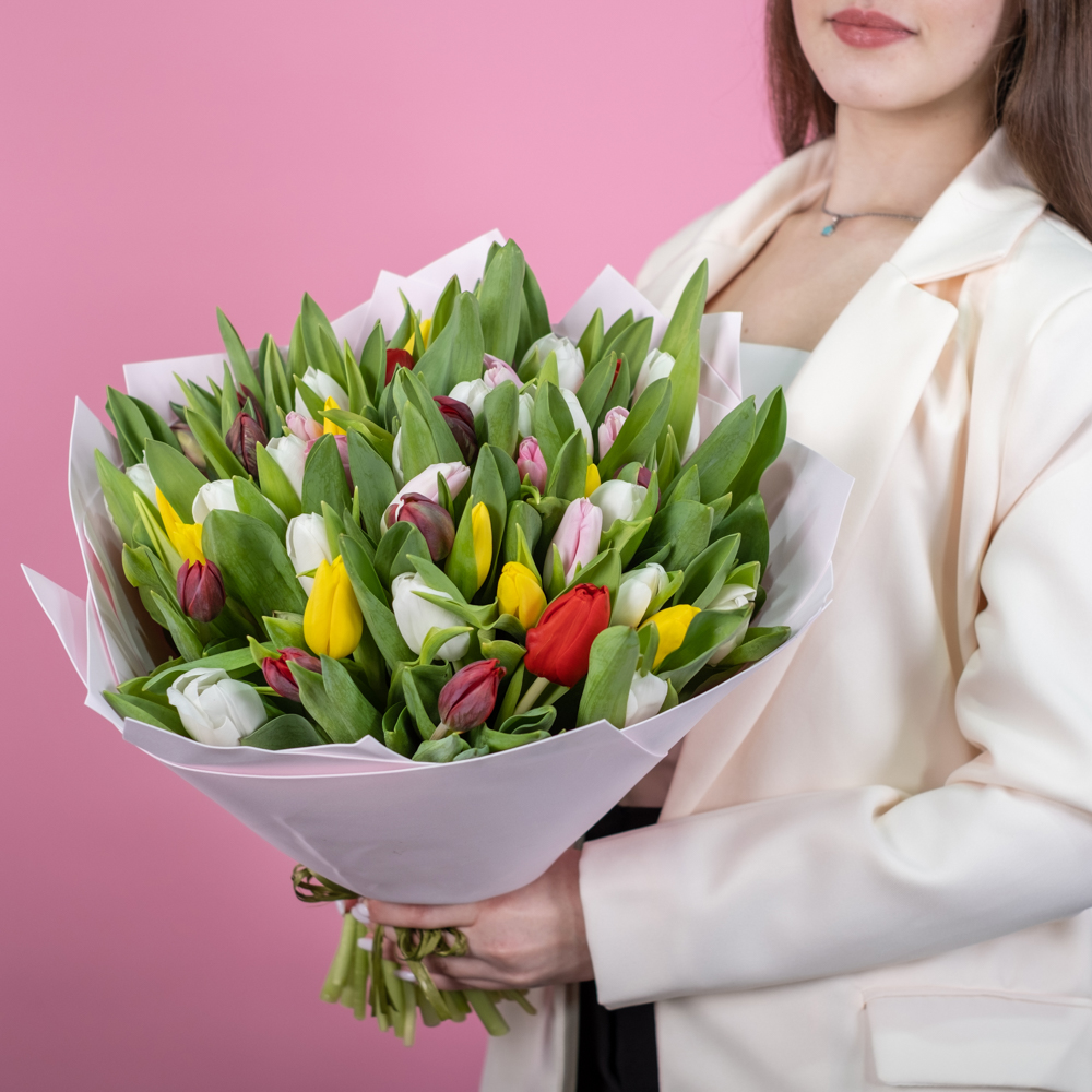 Тюльпаны просто волшебные! Букет был собран с любовью, все цветы ровные и свежие. Доставка вовремя, сервис на высоте. Спасибо за яркие эмоции!