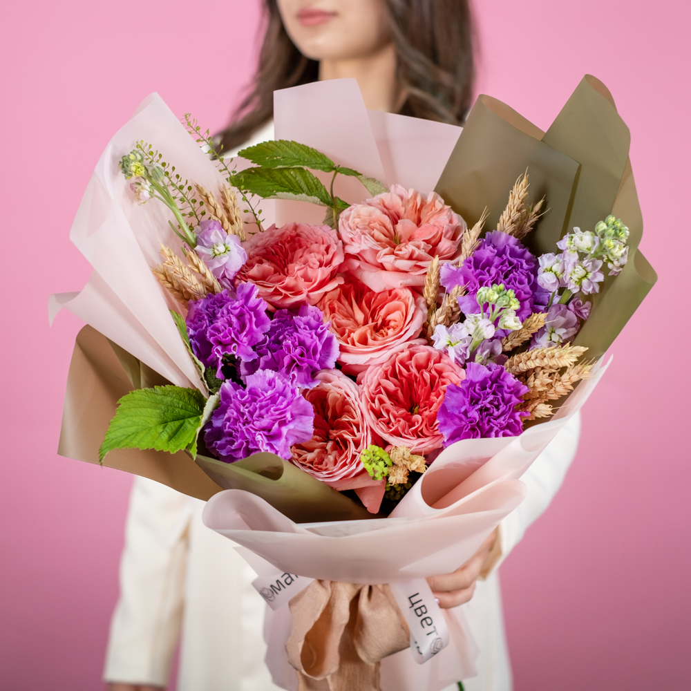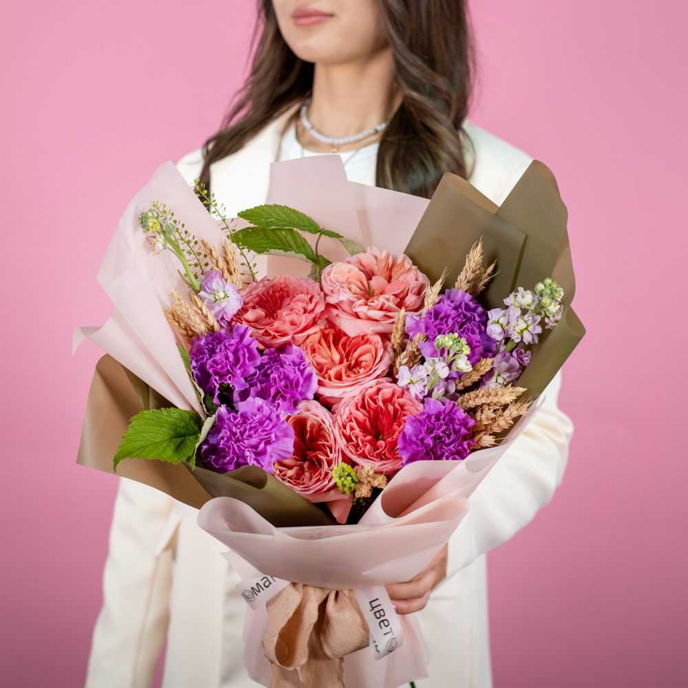 Букет доставляется в аквабоксе и фирменной сумке. Упаковка может незначительно отличаться.