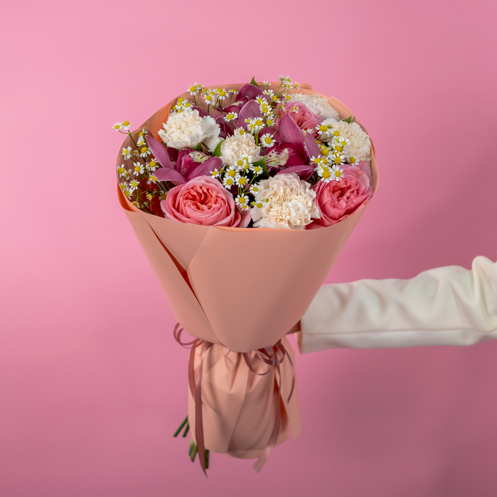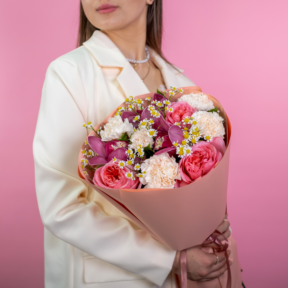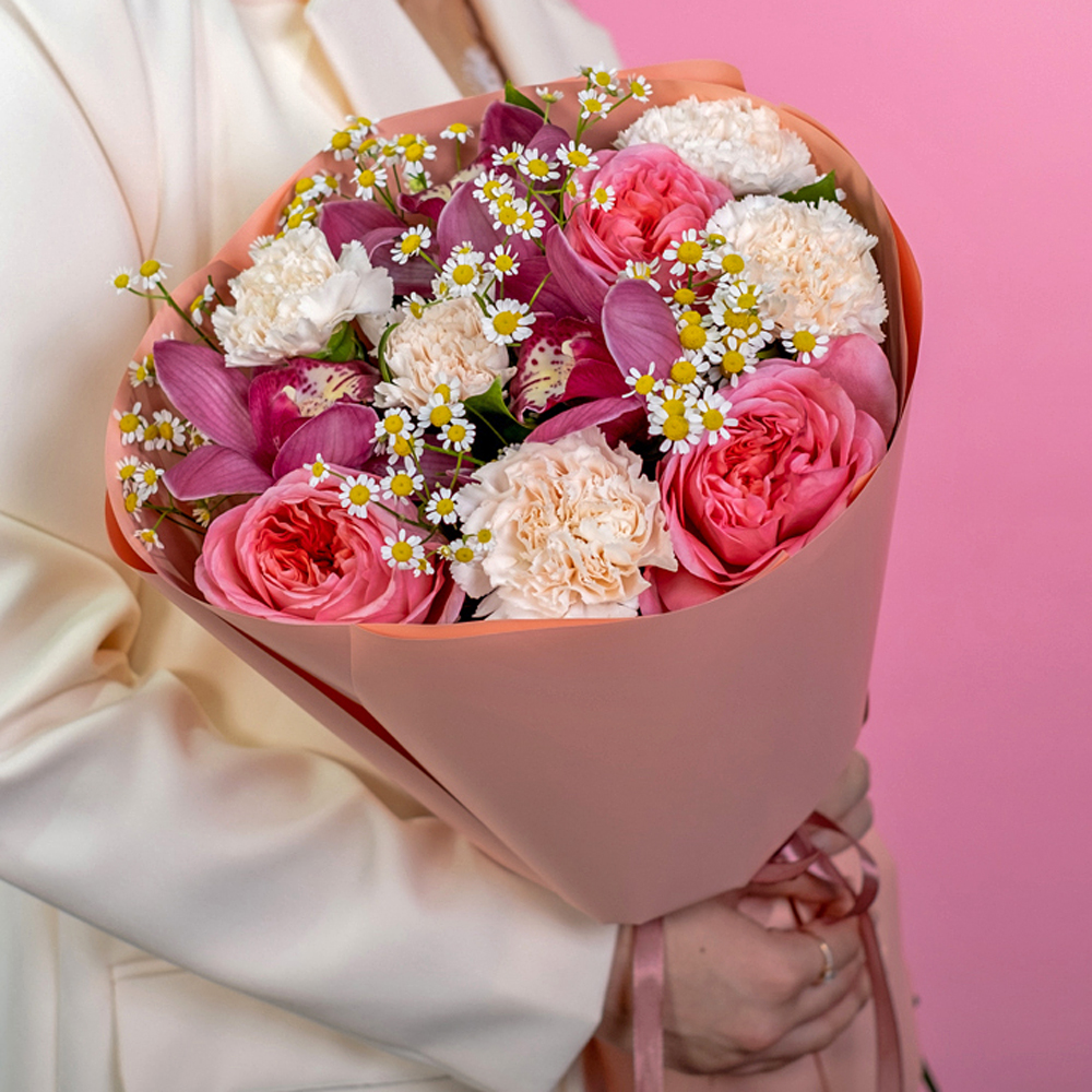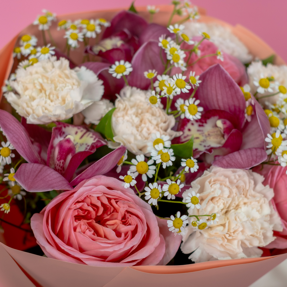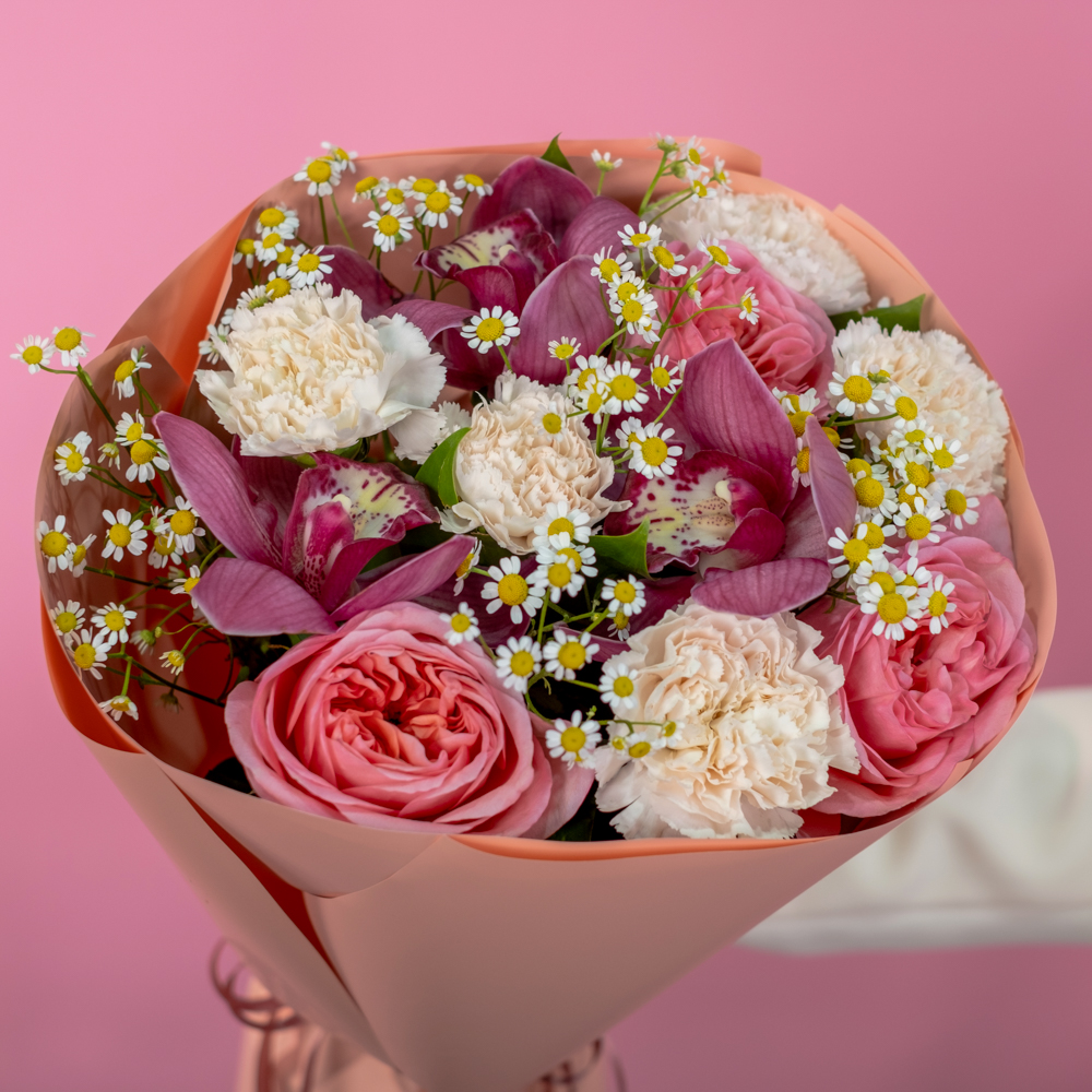 Я подарила этот букет маме на день рождения. Орхидеи придают элегантность, а ромашки будто возвращают в детство, когда мы собирали их на лугу. Букет получился стильным и очень душевным. Спасибо, что помогли выбрать именно его - он идеально подошёл.