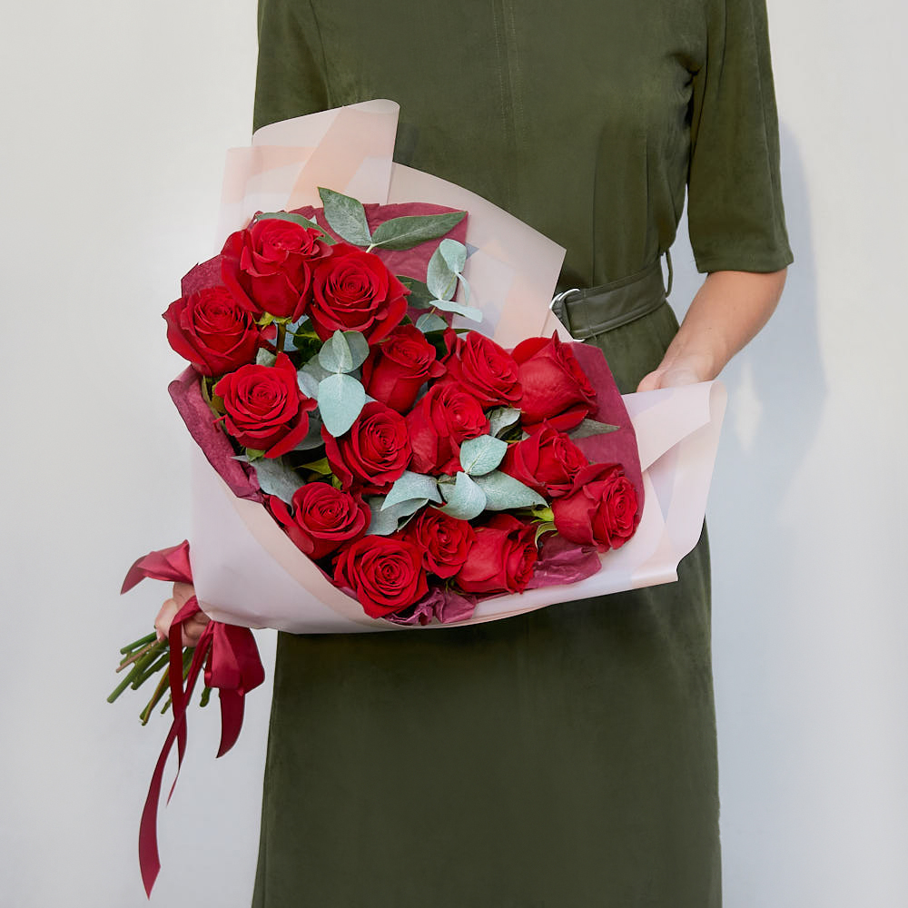 Отзывы - Букет «Грация» из красных роз и веток эвкалипта