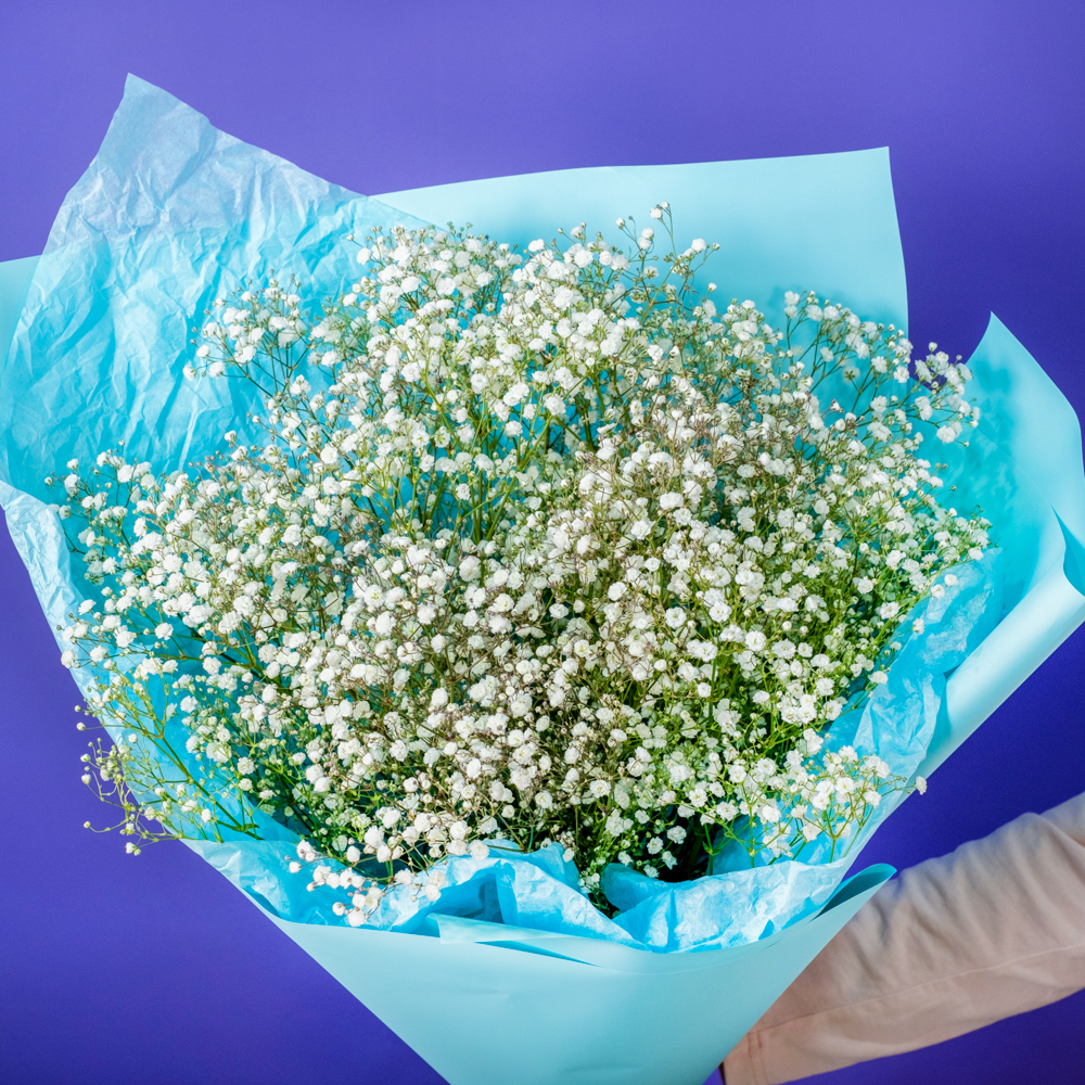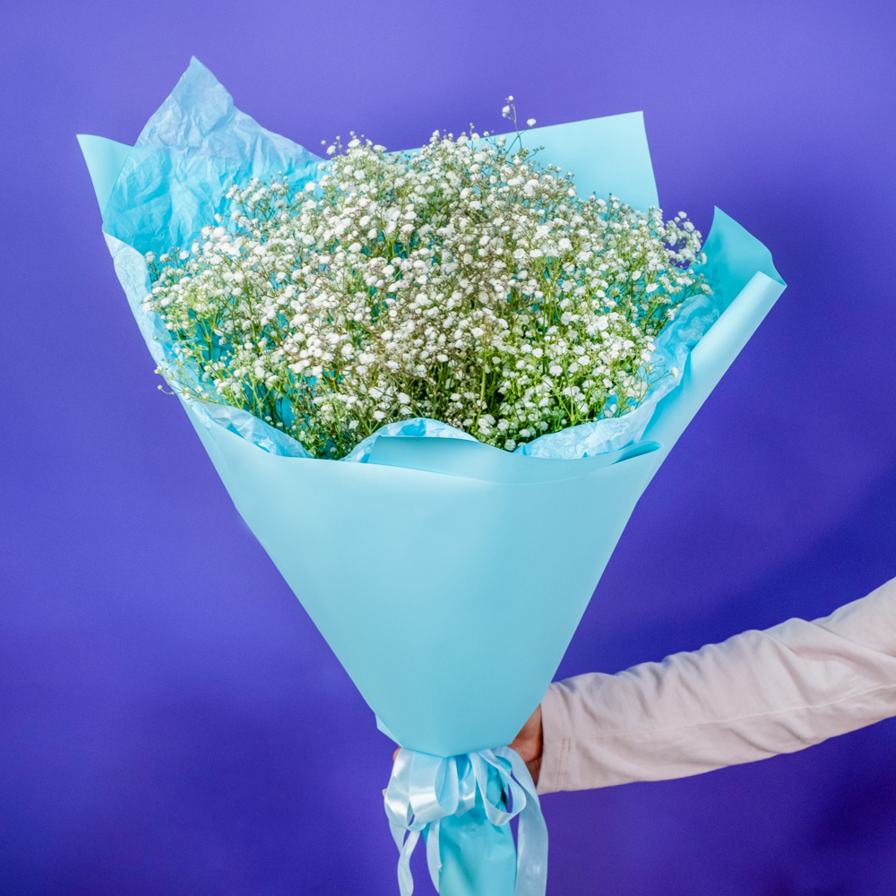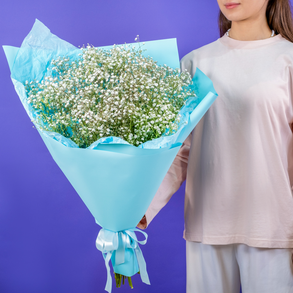 Состав букета: гипсофила 13 шт., упаковка, лента