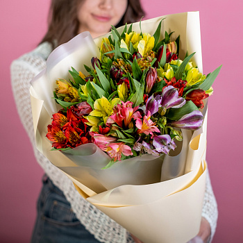 Букет Лана и тортик пломбир с малиной отправились маме и сестре в честь семейного праздника. Было очень волнительно сделать сюрприз своим любименьким)) цветовая гамма яркая, сочная, как раз под настроение! Отличная работа!