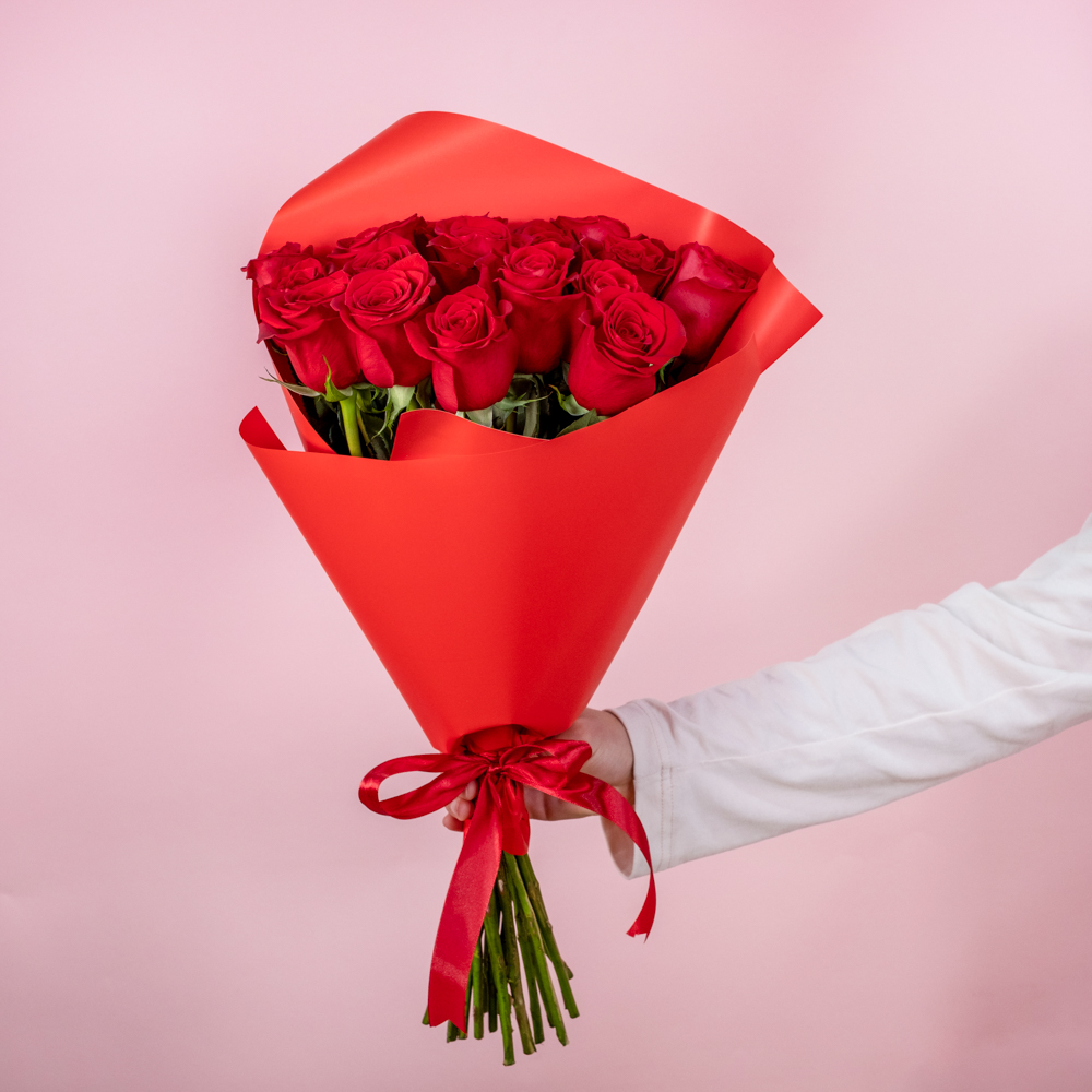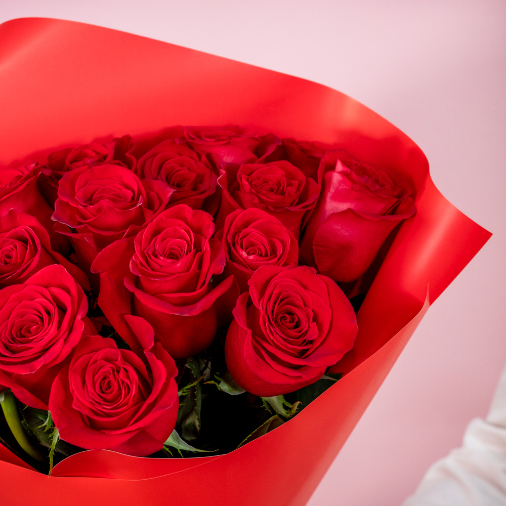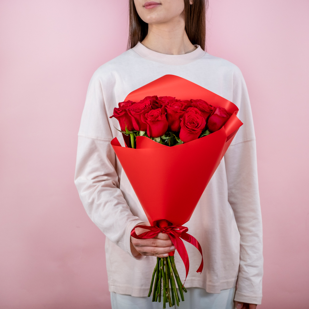 Состав букета: роза Эквадор 50см 17, упаковка, лента