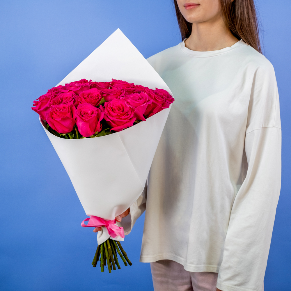 Состав букета: роза Эквадор 50см 17, упаковка, лента