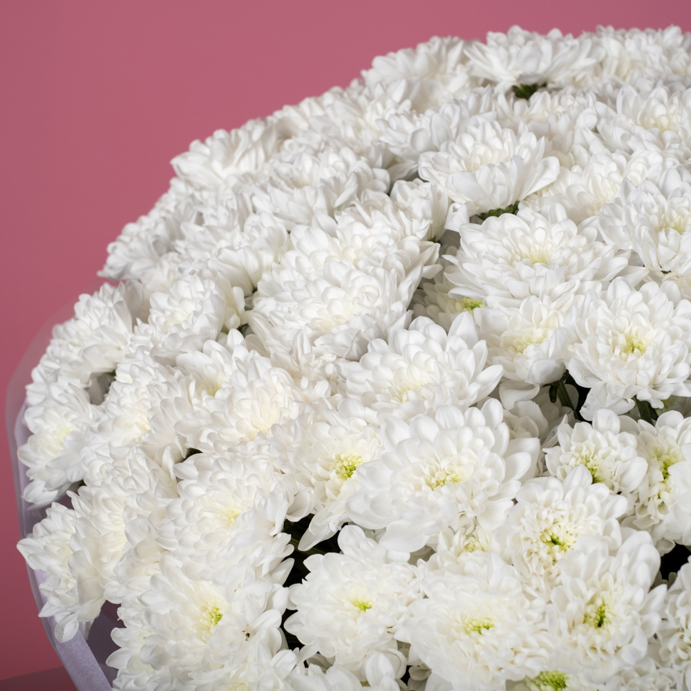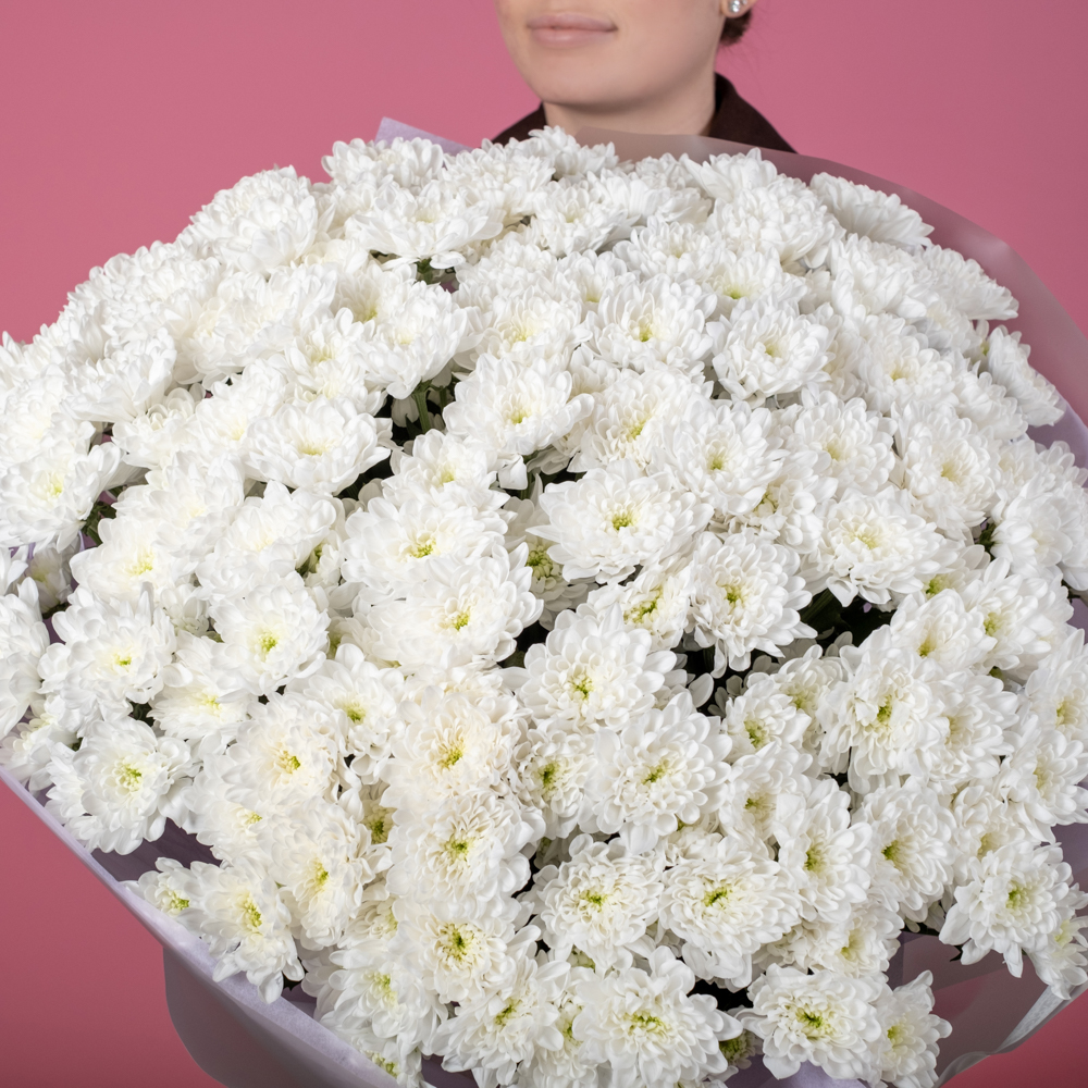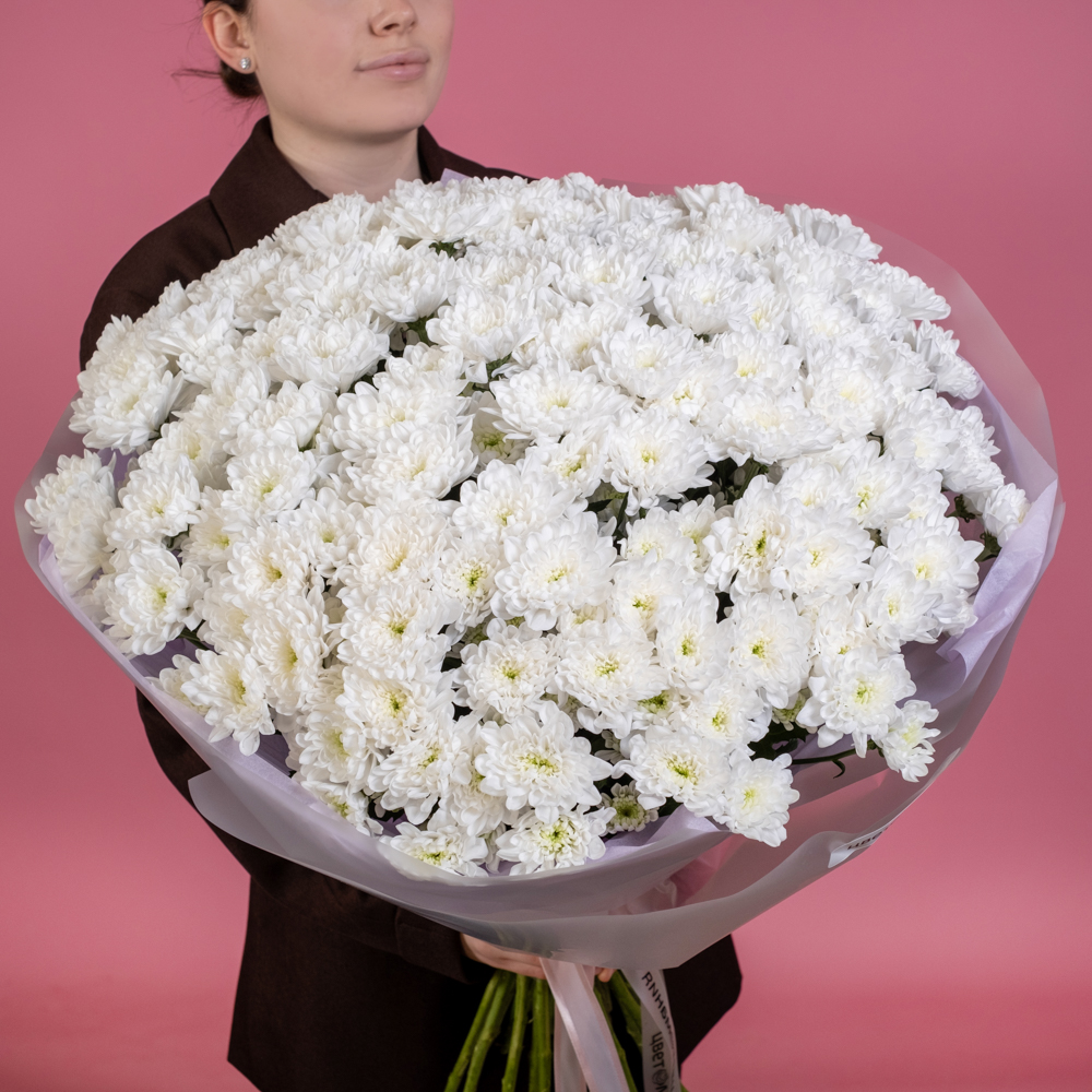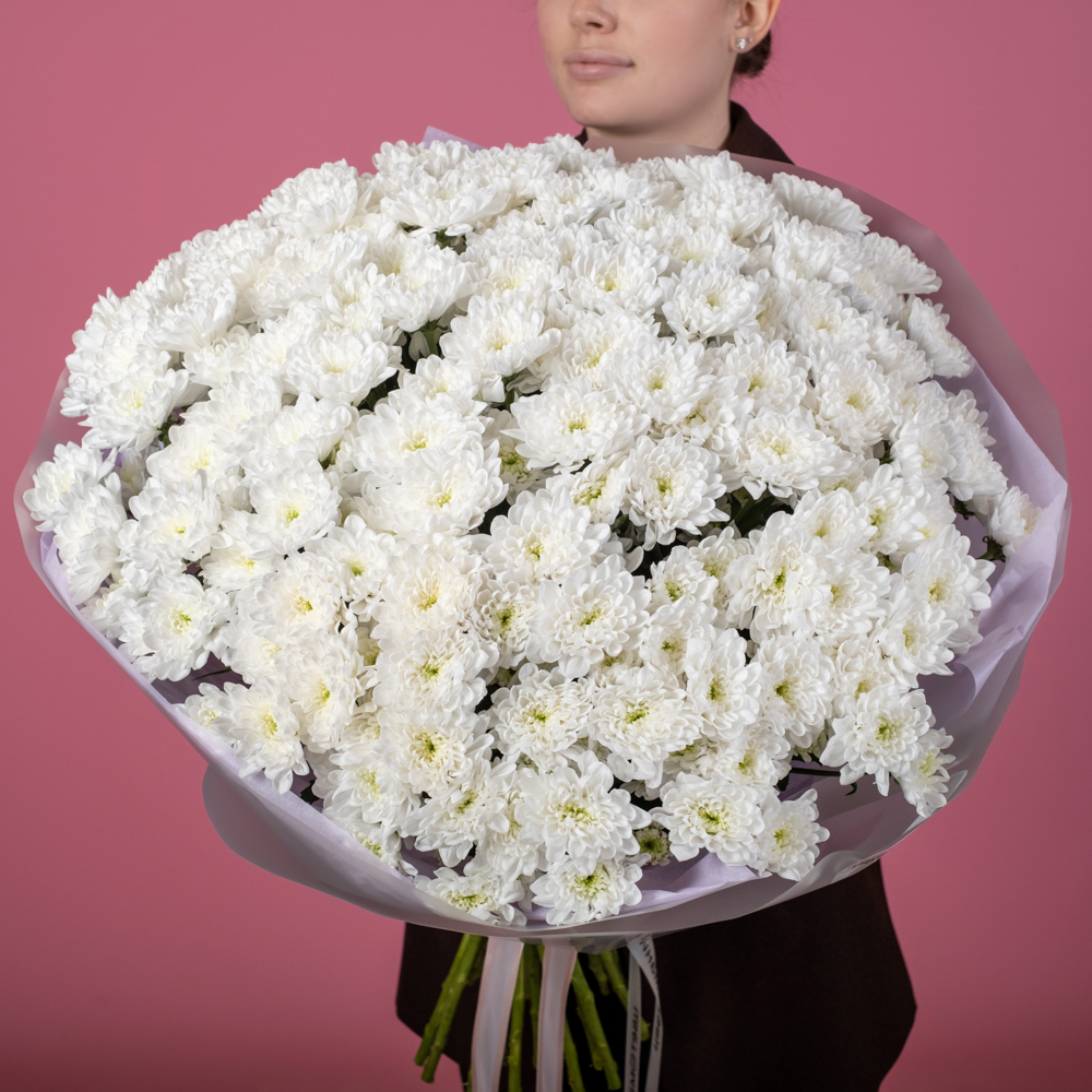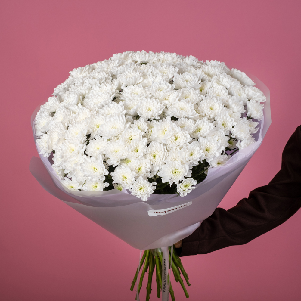 презентовал такой пышный букет жене на день семьи. Сначала хотел прямо натуральные ромашки взять, потом увидел эти хризантемы. Очень рад, что выбрал в итоге этот букет. Очень солнечный и пышный. Жене понравилось