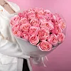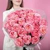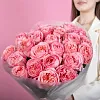 Букет шикарный! Очень густой, тяжелый, розы одна к одной. Раскрываются красиво, прямо как пионы, лепестки волнистые. Аромат нежный, ненавязчивый. Поставила в большую вазу — теперь в комнате как в цветочном магазине) Простояли 10 дней точно, потом начала засыхать, но это нормально. Парню респект, флористам спасибо за качество.