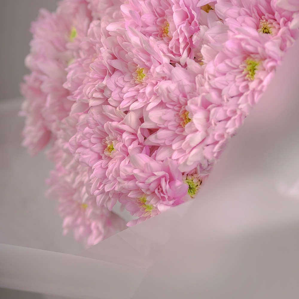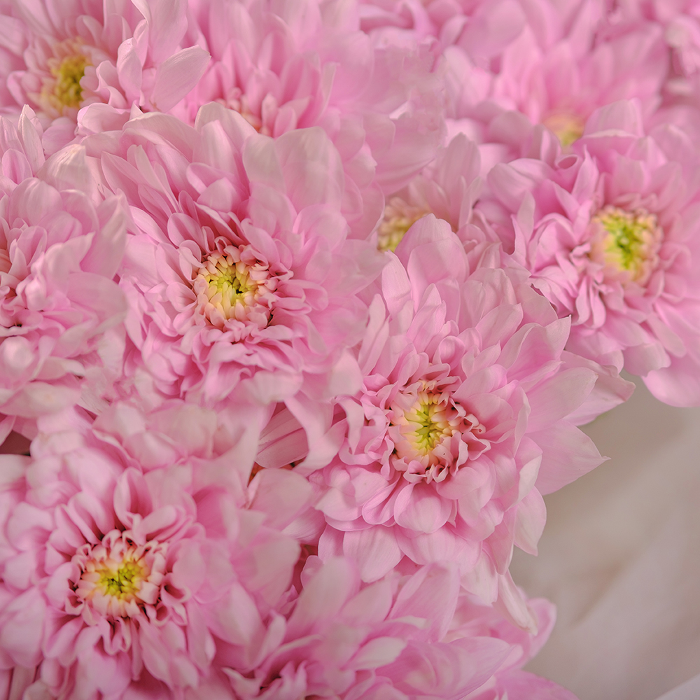 Пышный букет розовых кустовых хризантем станет любимым украшением вашего дома. Эти цветы символизируют радость, долголетие и богатство. Многие хвалят их за неприхотливость и стойкость. Упаковка может незначительно отличаться.