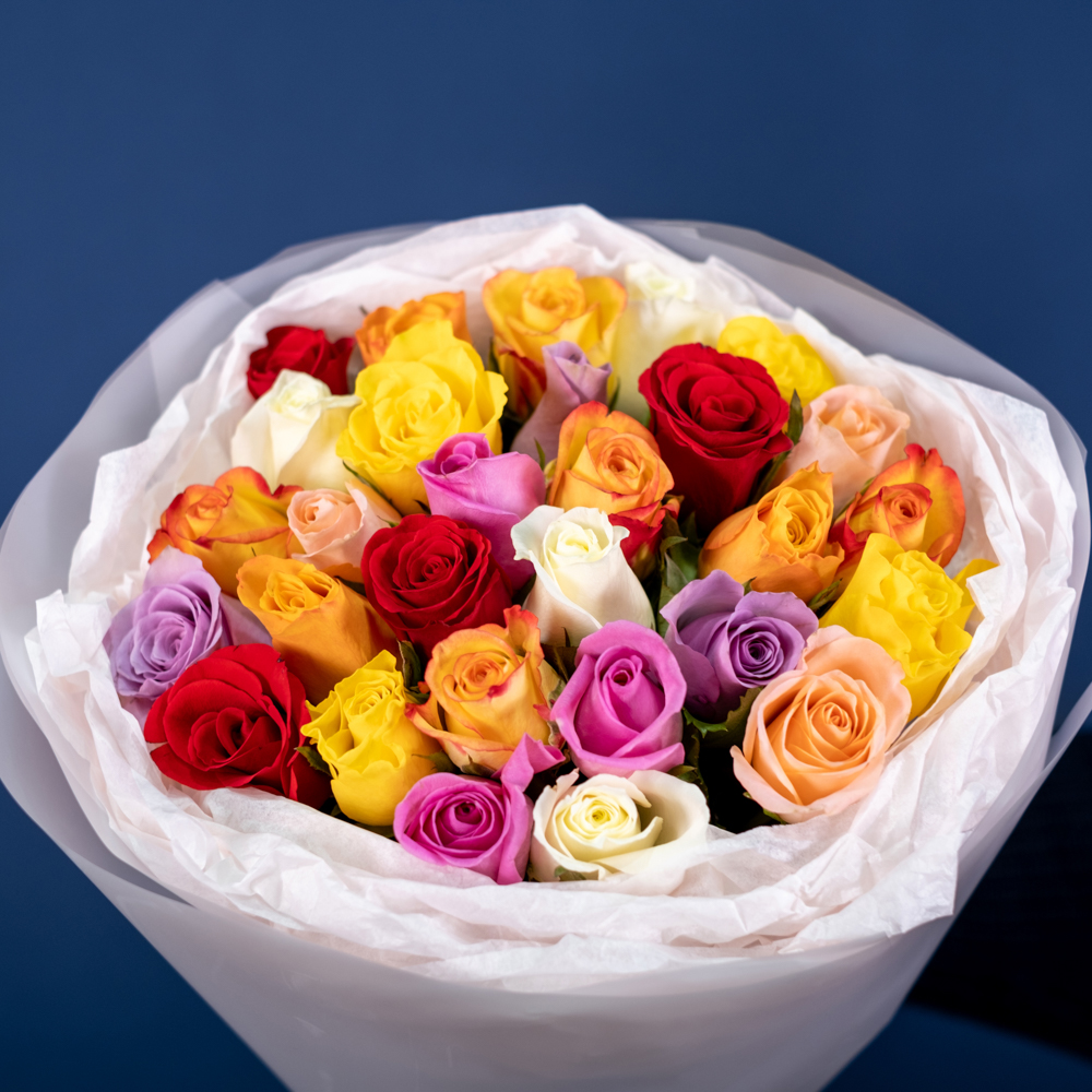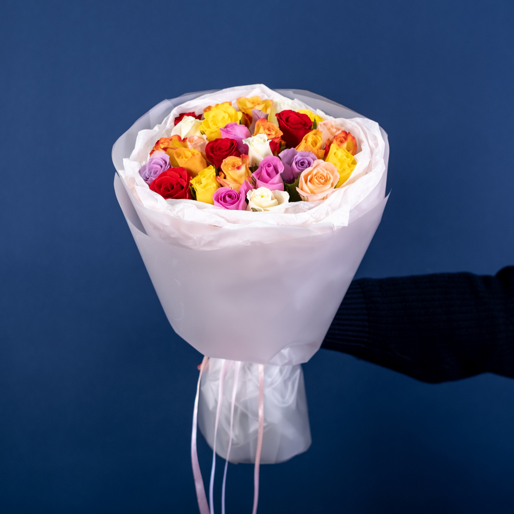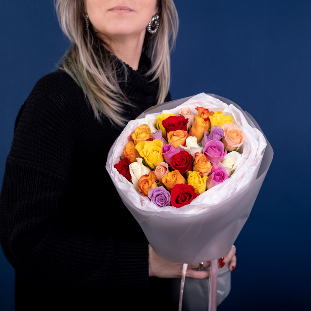 Огромное спасибо за шикарный букет! Все цветы идеально подобраны друг к другу, создавая гармоничную композицию. Розы насыщенные, глубокого цвета, а упаковка дополнила их элегантность. Видно, что флористы знают свое дело!