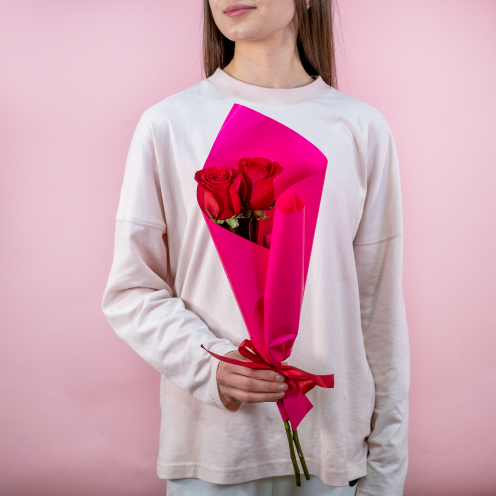 Купить Букет из 2 красных роз 50 см (Эквадор) в  с бесплатной доставкой: цена, фото, описание