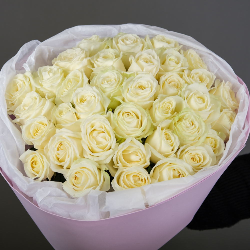 Крестной на 50 лет решила подарить классические белые розы. Взяла 35 штук — и не прогадала. Белый цвет всегда смотрится благородно. Розы российские, но качество отличное — стебли ровные, листья зеленые, бутоны крупные. Крестная аж всплакнула, сказала, что так красиво её ещё не поздравляли. Поставила в две вазы, любовалась недели полторы. Упаковано аккуратно, довезла без проблем. Спасибо за качество и красоту.
