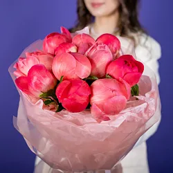 Состав букета: пион стандарт 35, упаковка фоамиран, лента