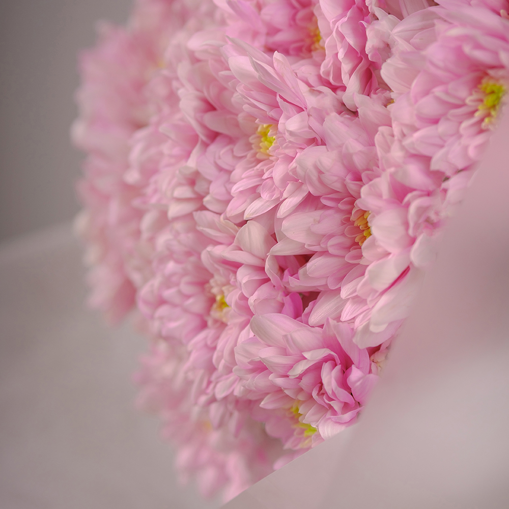 Большой букет из 35 розовых хризантем с пышными соцветиями наполнит ваш день самыми яркими красками, солнечным светом и теплом. Эти жизнерадостные розовые цветы - символ благополучия и долголетия. Роскошно смотрятся в монобукете. Упаковка может незначительно отличаться.