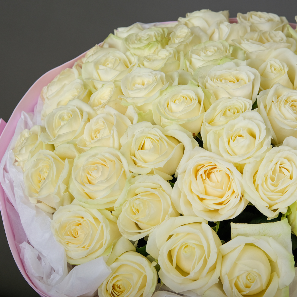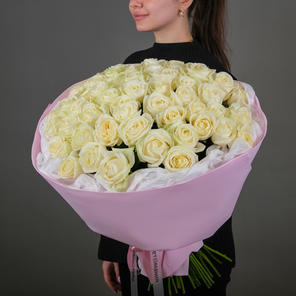 Купить Букет из 51 белой розы 60 см (Россия) в упаковке в  с бесплатной доставкой: цена, фото, описание