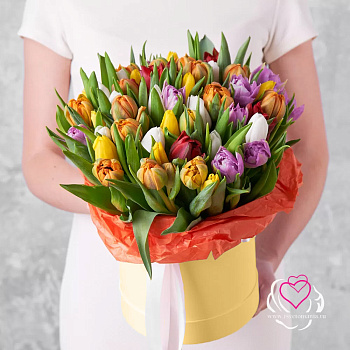 Тюльпаны фиолетового оттенка с давних времен подчеркивают уважение и достоинство. Подарите их начальнице или женщине, качествами которой восхищаетесь. Упаковка может незначительно отличаться.