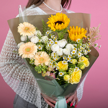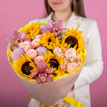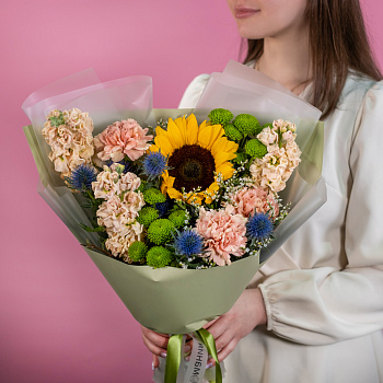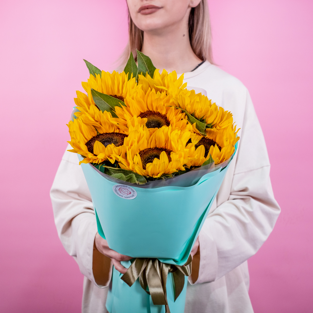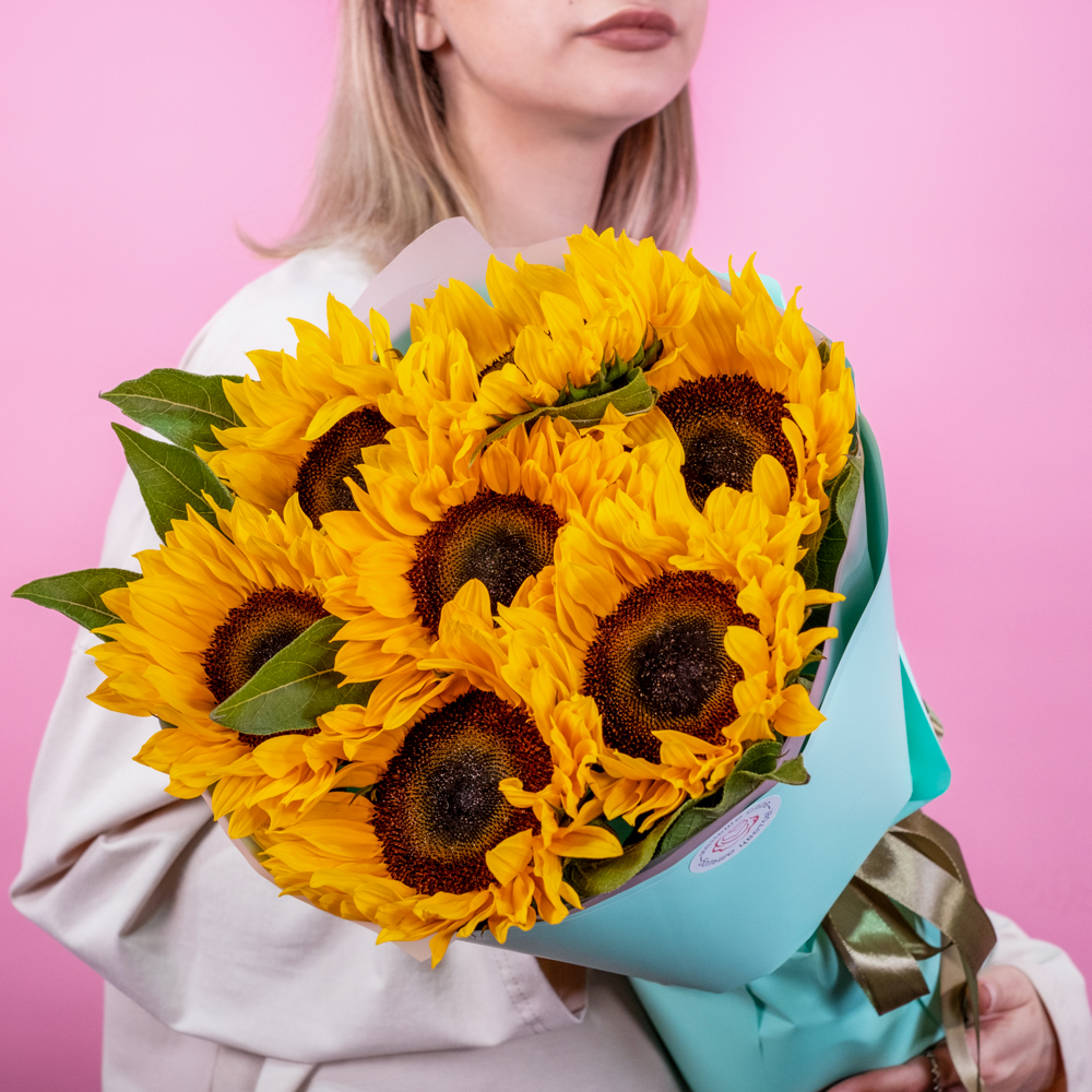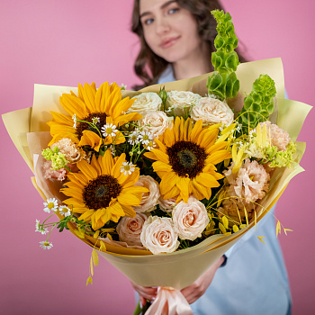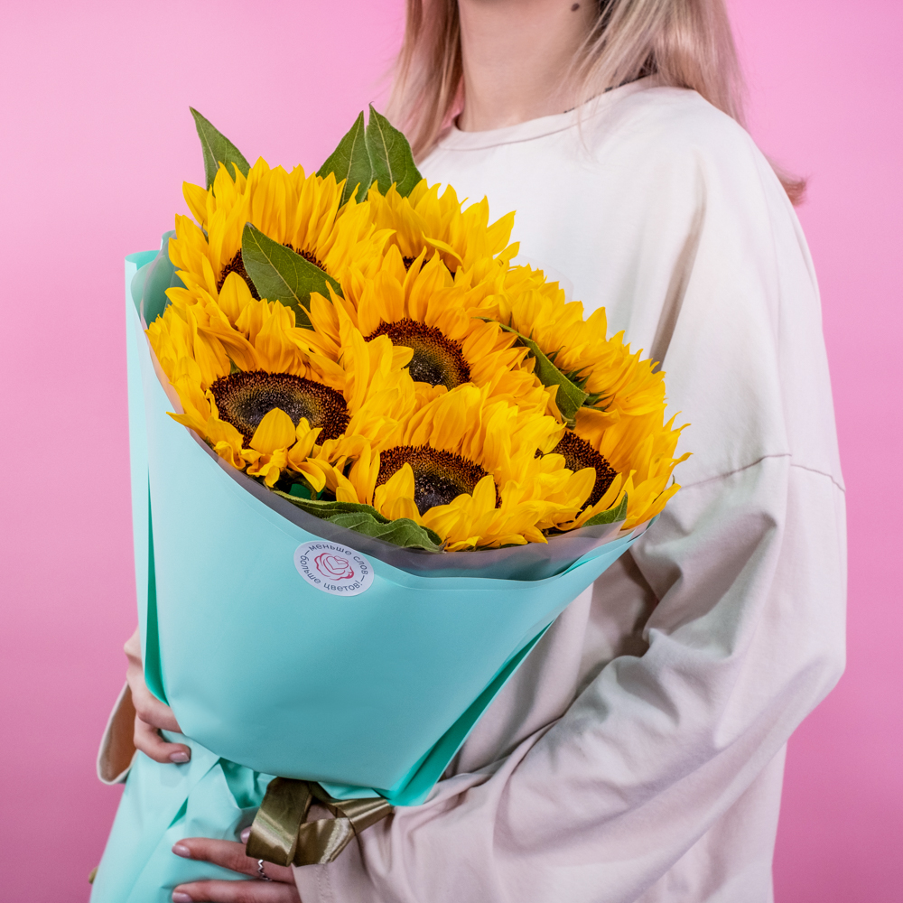 букет для тех, кто любит удивлять) Никогда еще не дарил подсолнухи. Девушке понравилось. Доставка не подвела, все как договорились