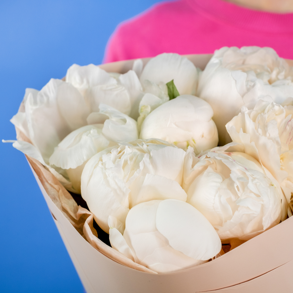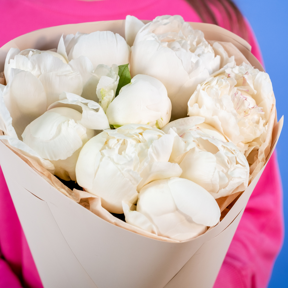 Состав букета: пион 9, упаковка, лента