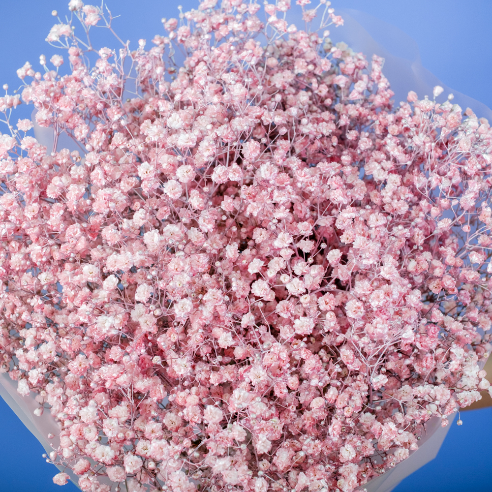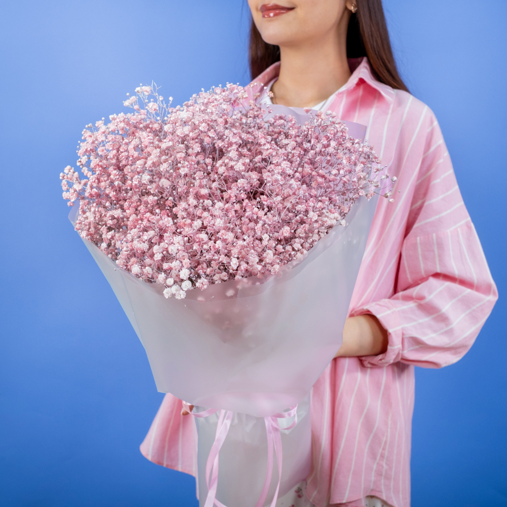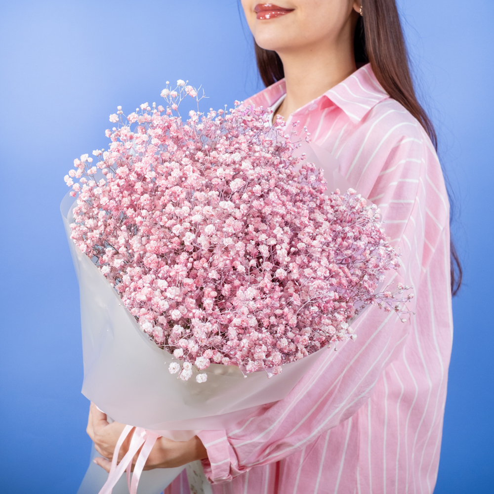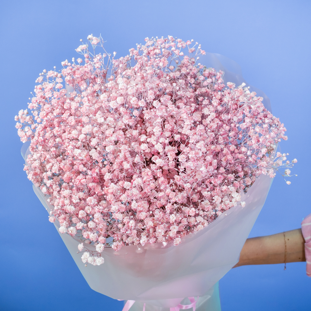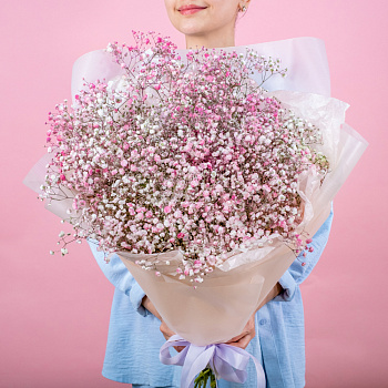 Даже самые яркие сорта гипсофилы кажутся светлыми и навевают мысли о чем-то непорочном. Данный цветок означает искренность мыслей и поступков. Композиция из розовых гипсофил поможет вам выразить все самые приятные эмоции. Упаковка может незначительно отличаться.