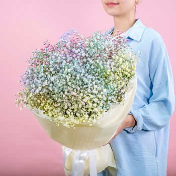 Состав букета: гипсофила крашеная 15, упаковка, лента