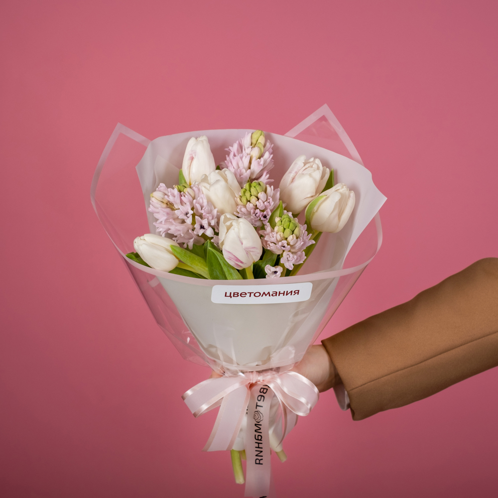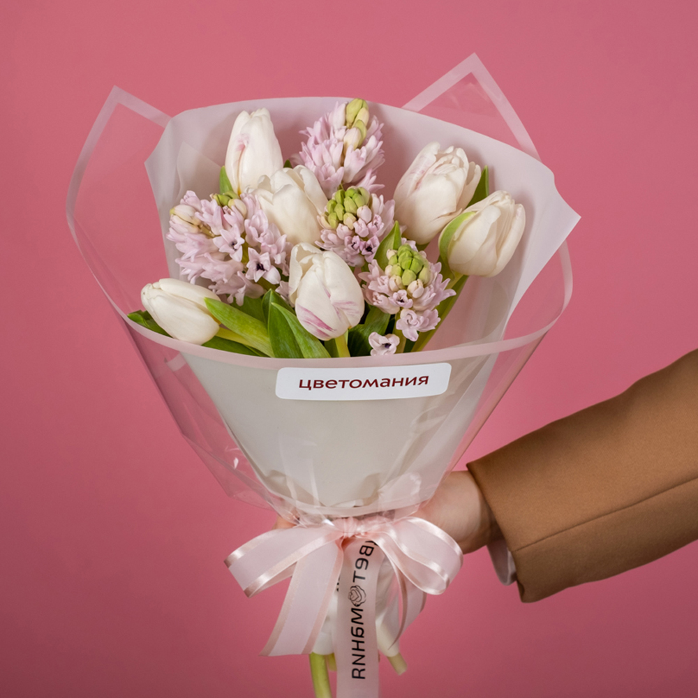 тюльпан 6, гиацинт 4, упаковка, лента