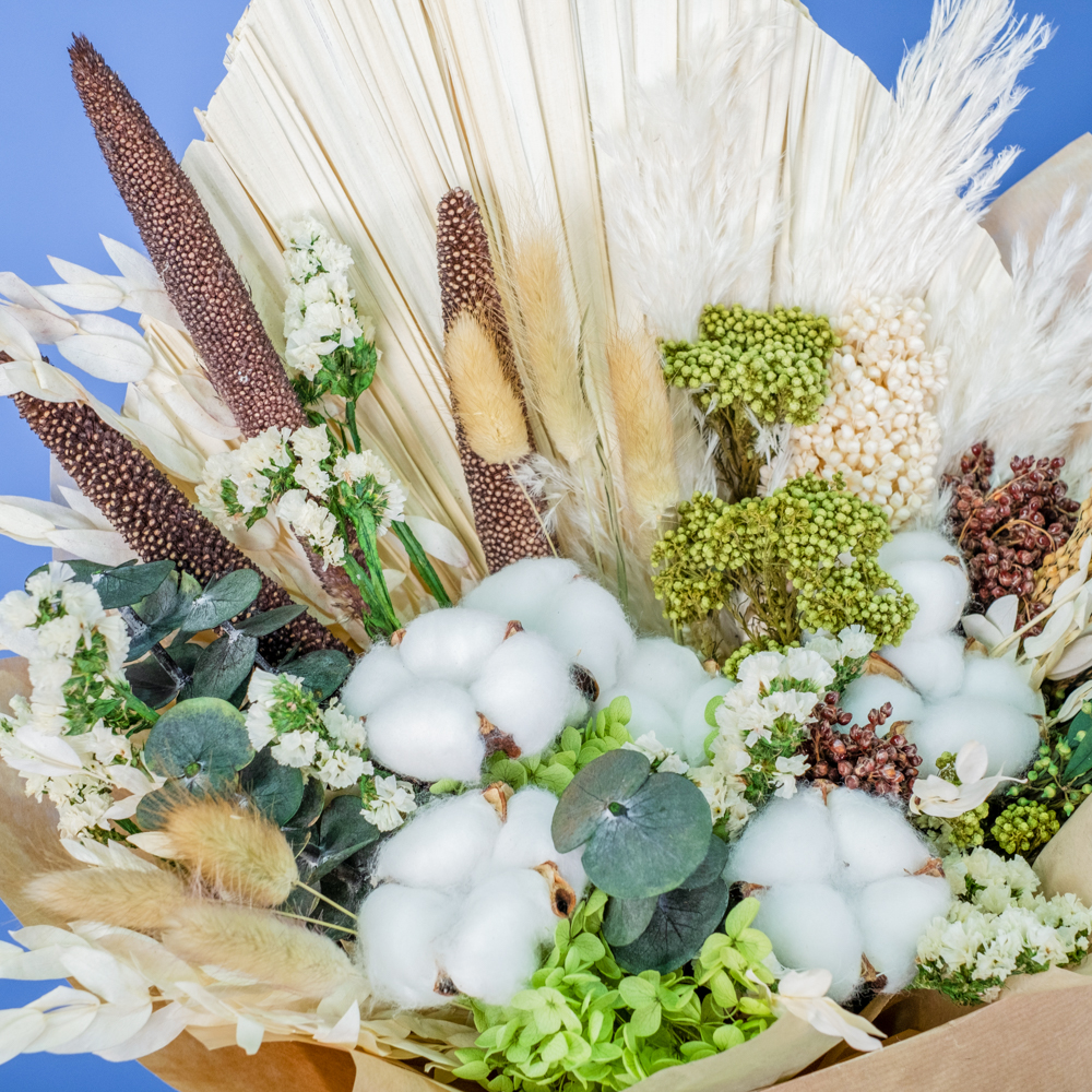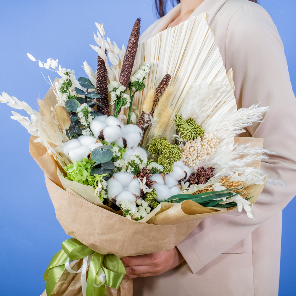 В составе букета: сухоцветы, упаковка, лента