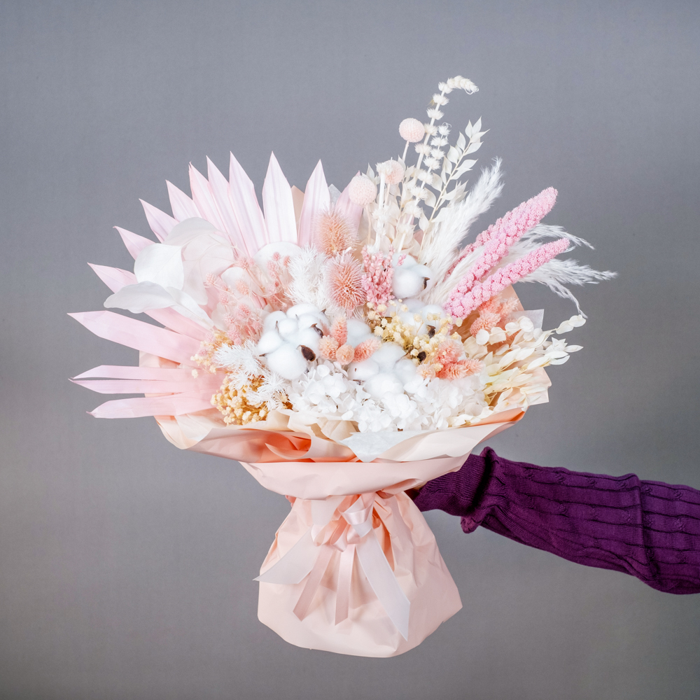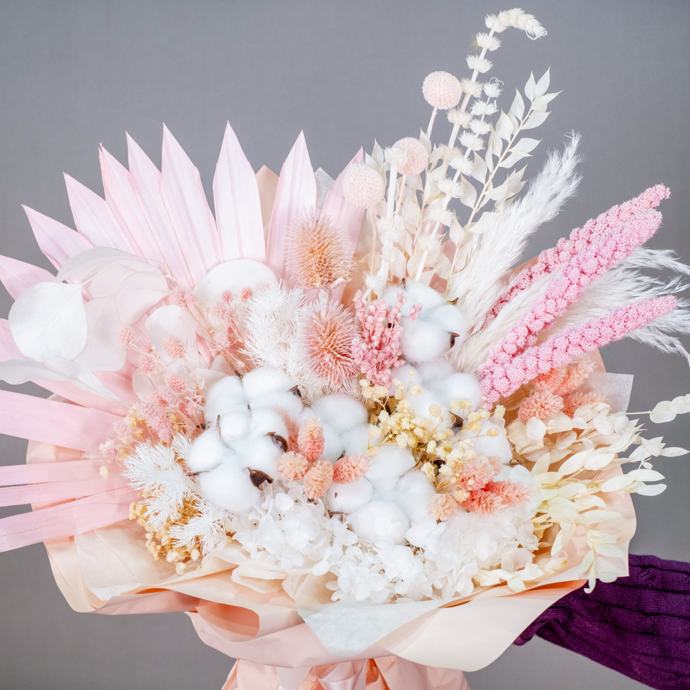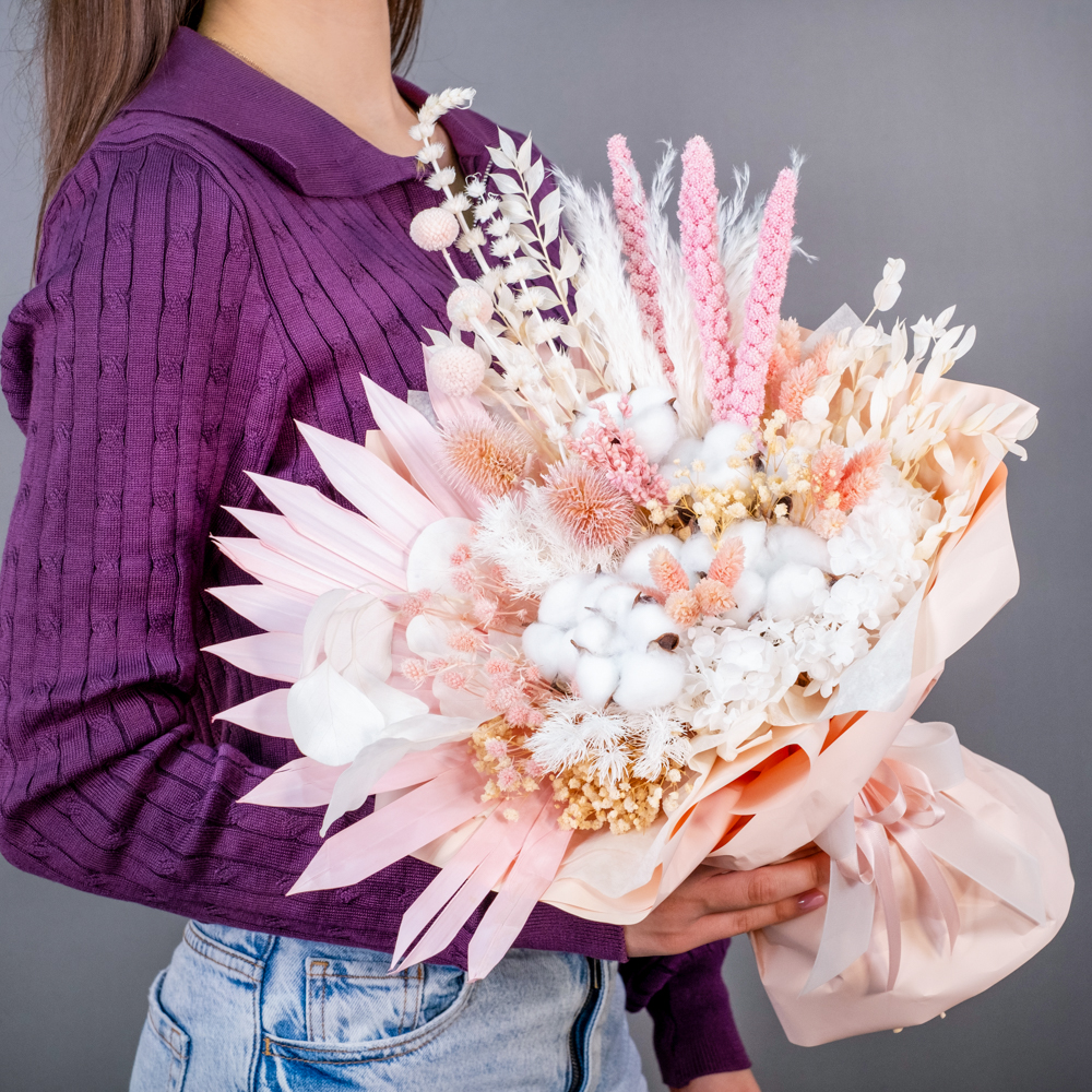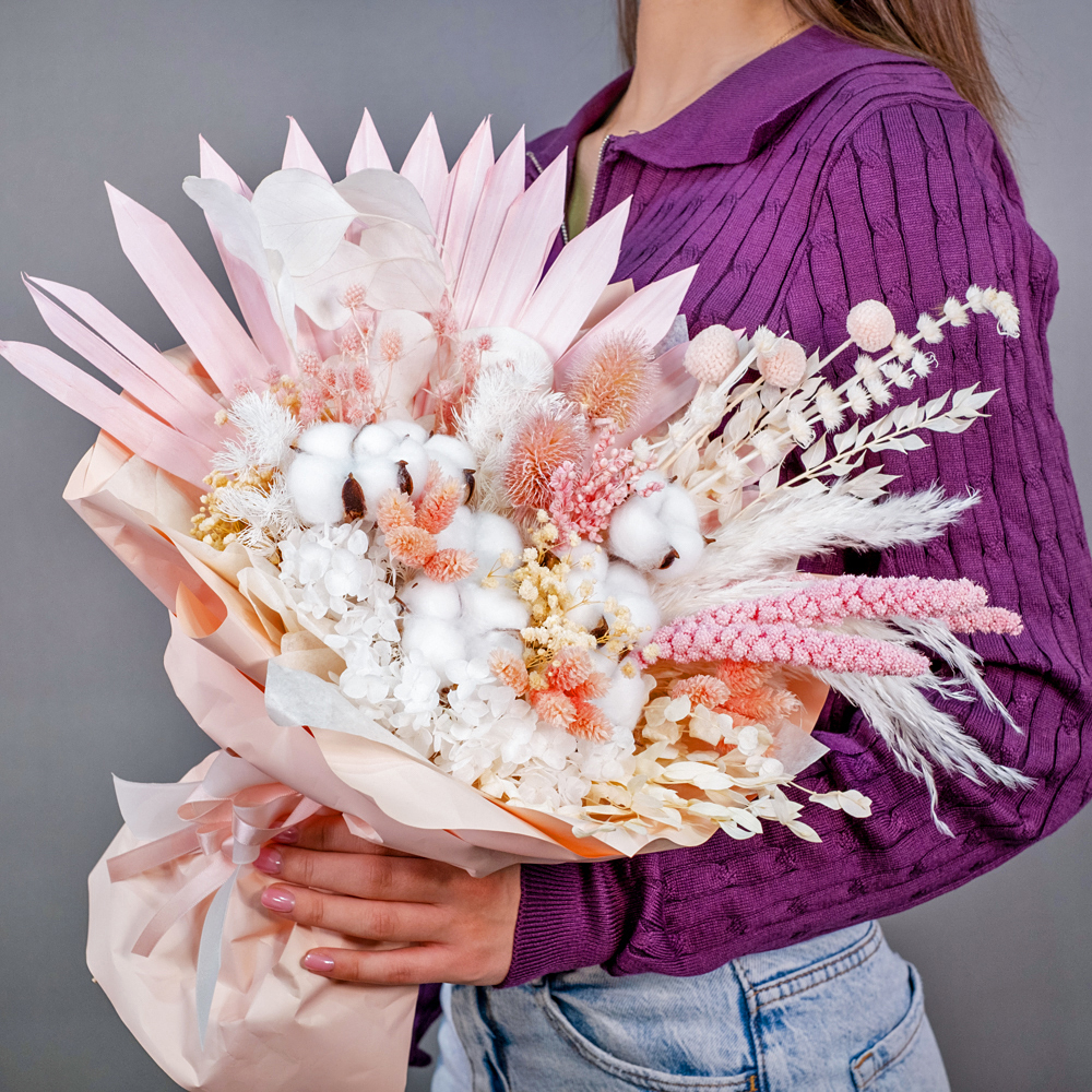 В составе букета: сухоцветы, упаковка, лента
