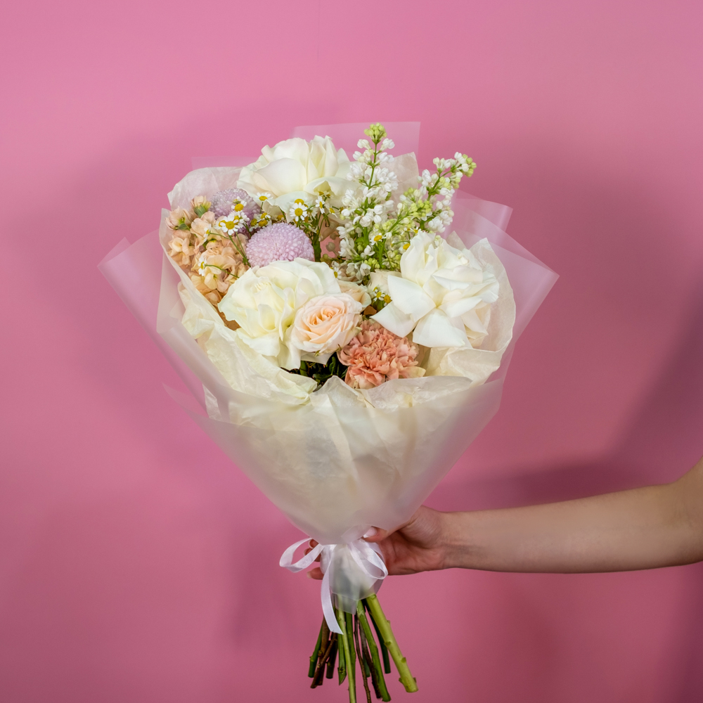 Упакуем букет, с полной защитой от перепадов погоды (жара, мороз, ветер или дождь - заказывайте букет в любую погоду)!