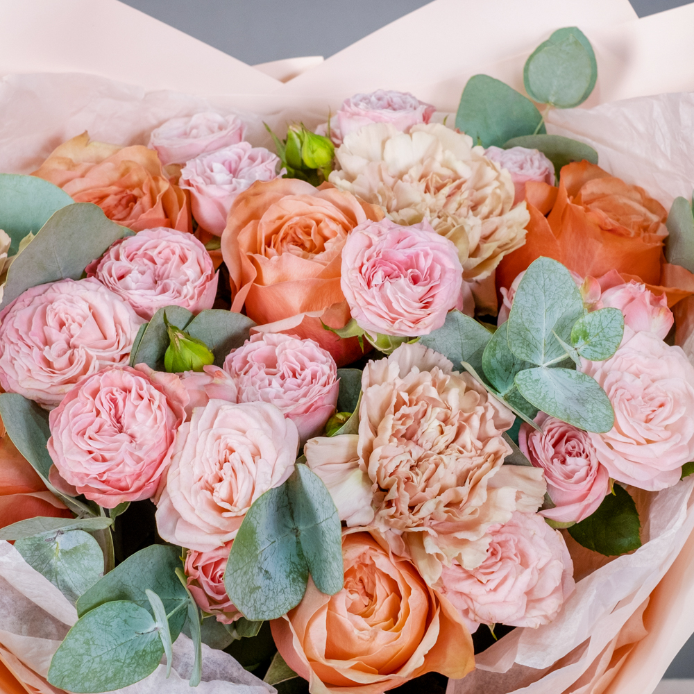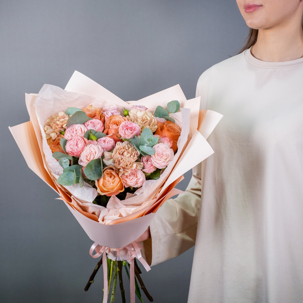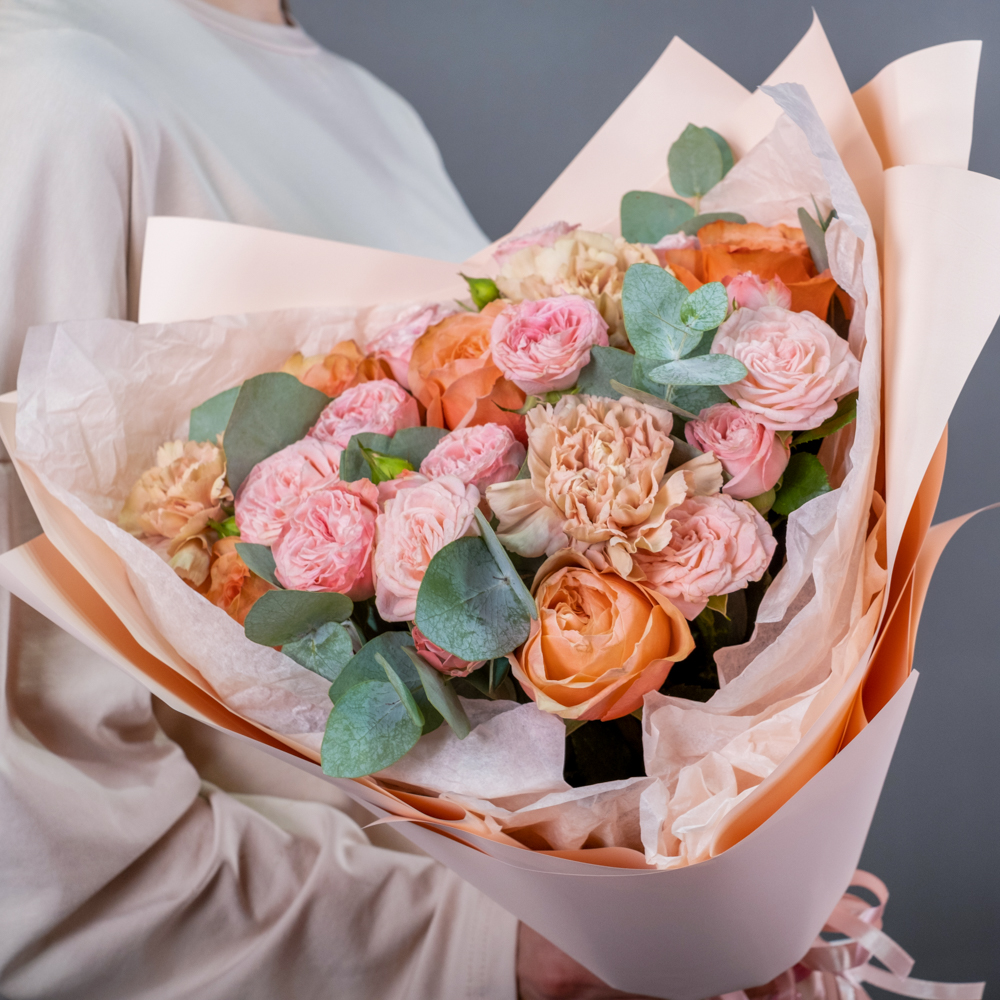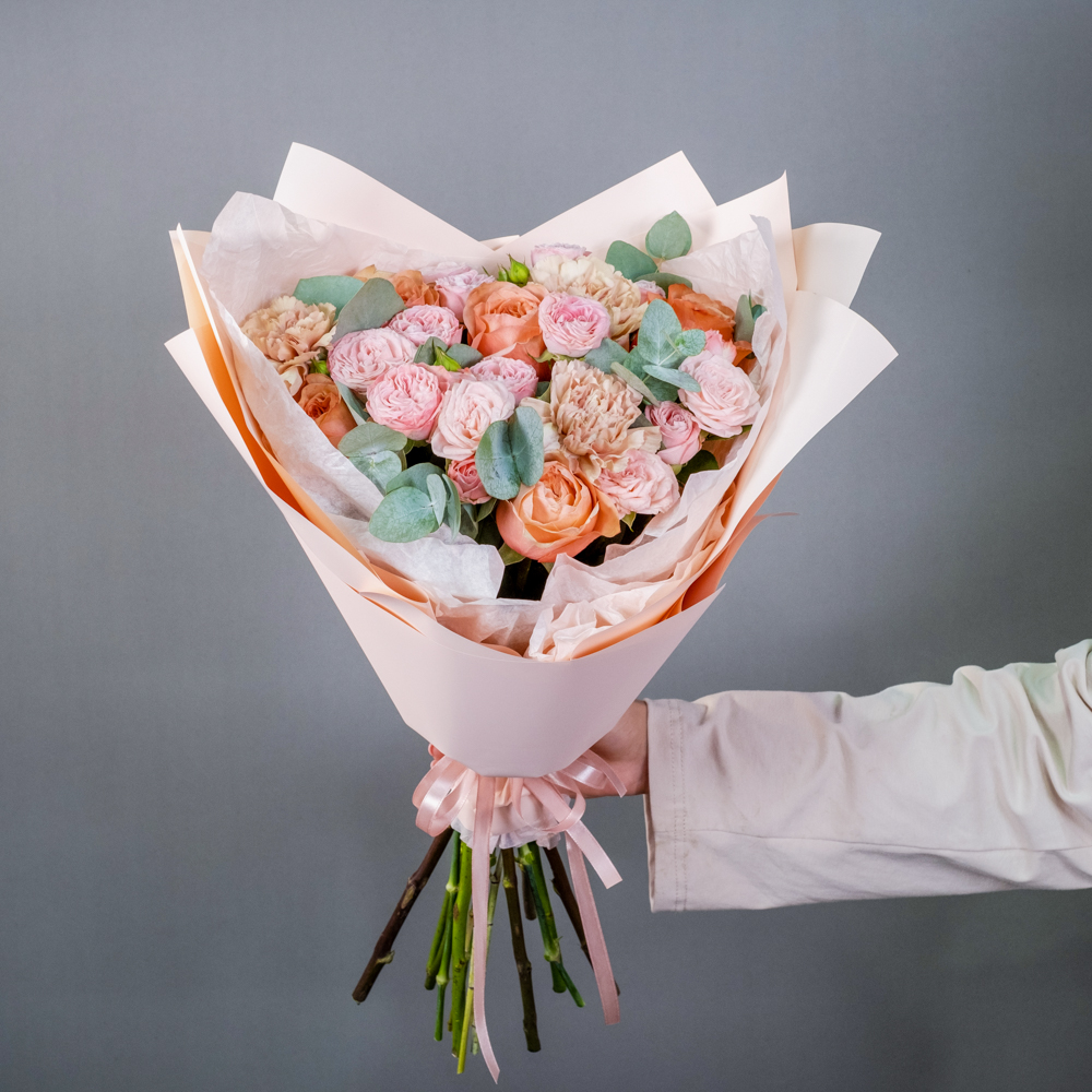 потрясающий букет, цветы свежие. букетик недорогой для своего оформления, хотя в нем присутствуют пионовидные розы - мои любимые. цвет упаковки понравился - классный желтый, но не совсем такой как на картинке