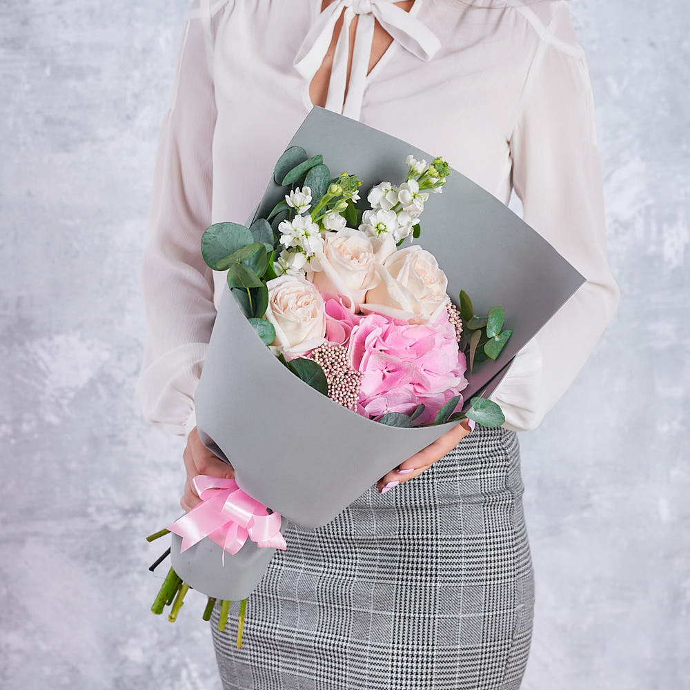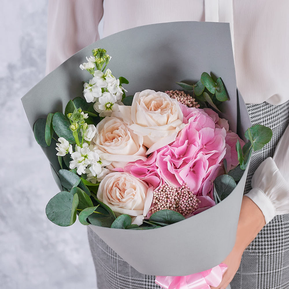 Купил нежный букет в стильной упаковке для своей мамы, чтобы поздравить с праздником. Я счастлив, когда вижу улыбку на её лице. Букет пришелся по душе - милый и нежный.