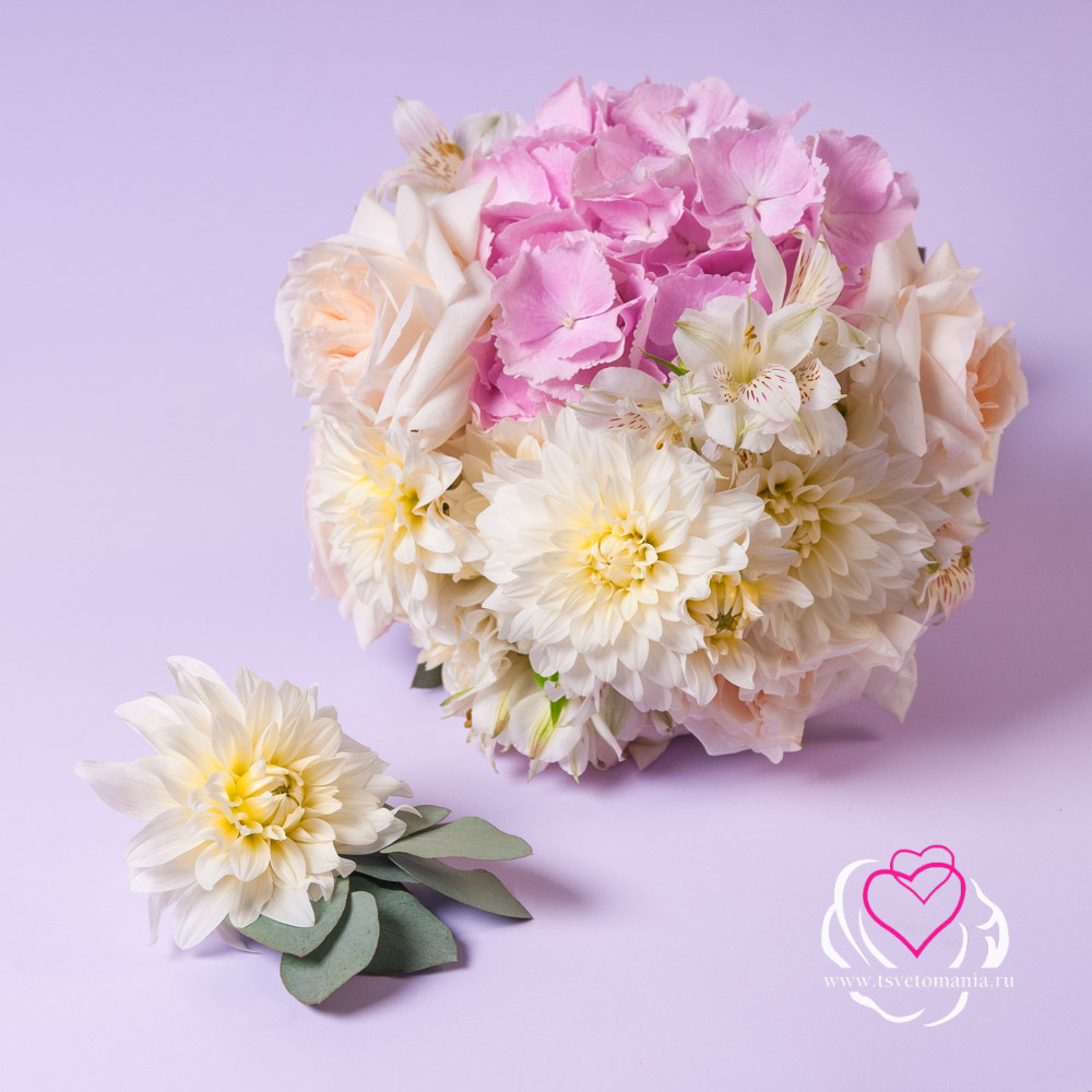 Заказ на свадебный букет принимается за 2 недели до даты события. За дополнительную плату к букету можно заказать бутоньерку - 700 рублей. Упаковка может незначительно отличаться.