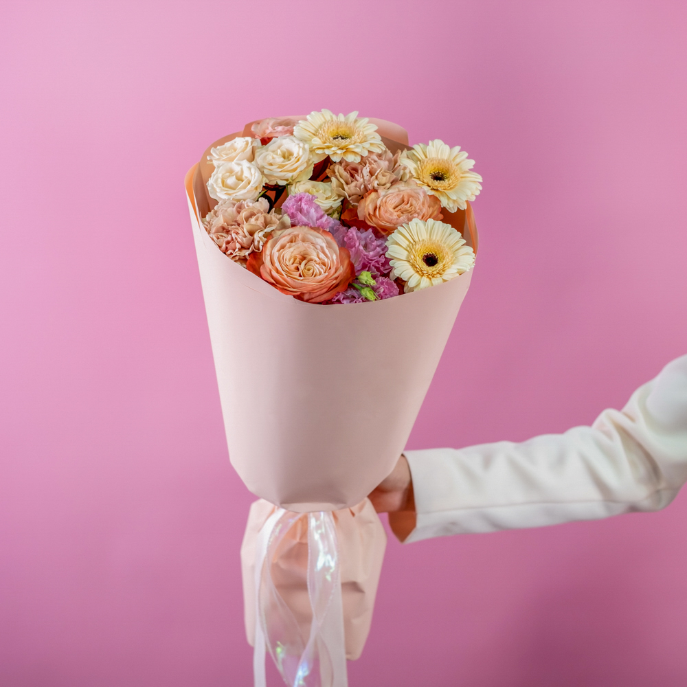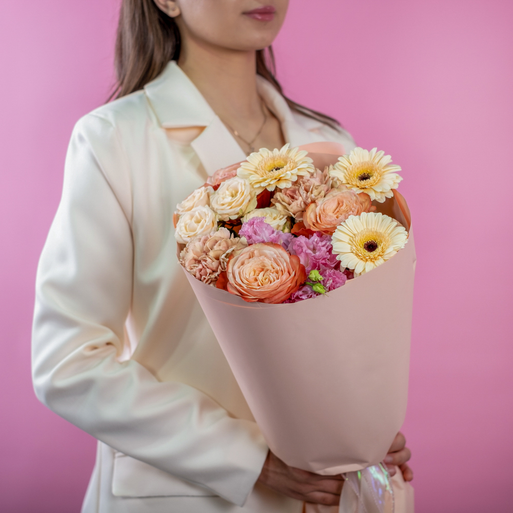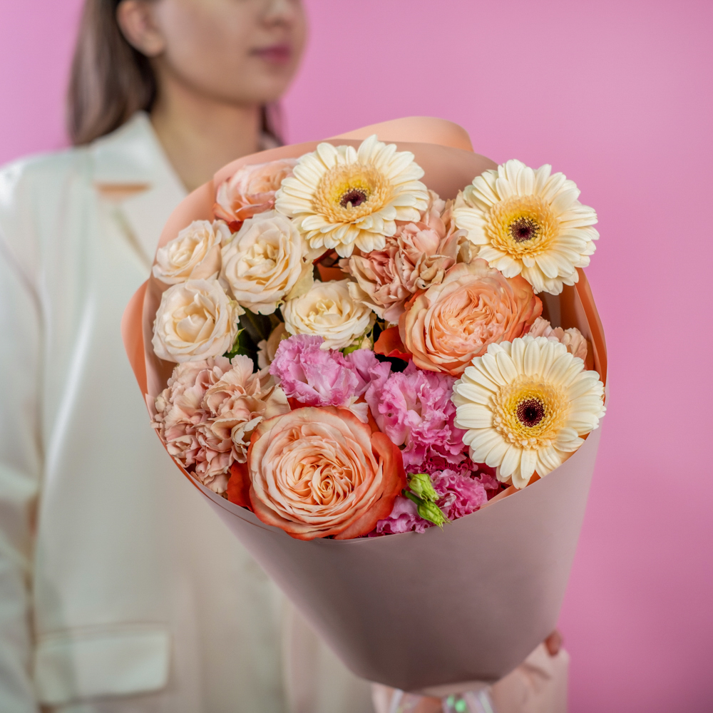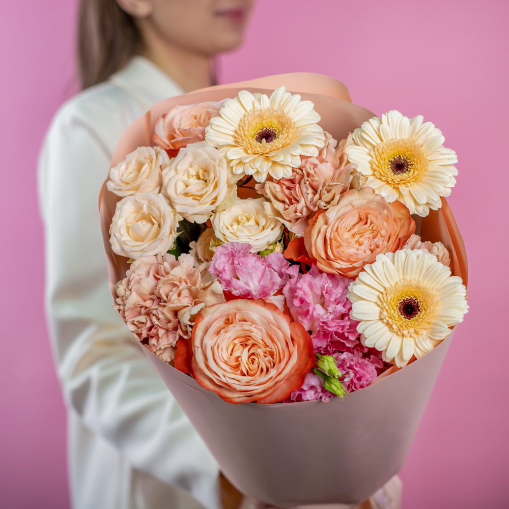 Интересный букет. Упаковка выполнена стильно, подчеркивает природную красоту цветов. Доставка прошла быстро и безупречно. Букет стал не только украшением праздника, но и источником восторга для всех.