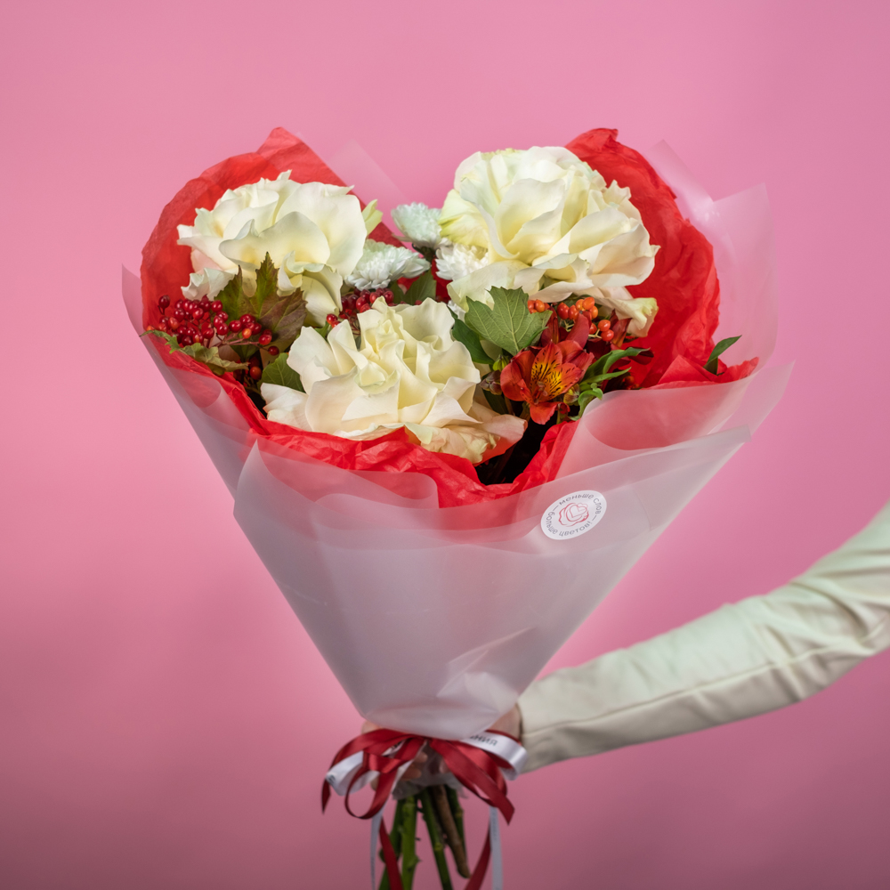 Упакуем букет, с полной защитой от перепадов погоды (жара, мороз, ветер или дождь - заказывайте букет в любую погоду)!