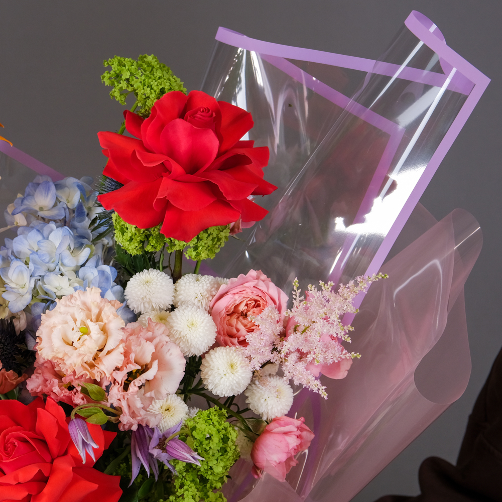 Упакуем букет, с полной защитой от перепадов погоды (жара, мороз, ветер или дождь - заказывайте букет в любую погоду)!