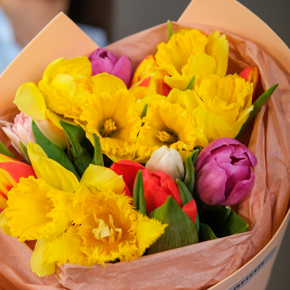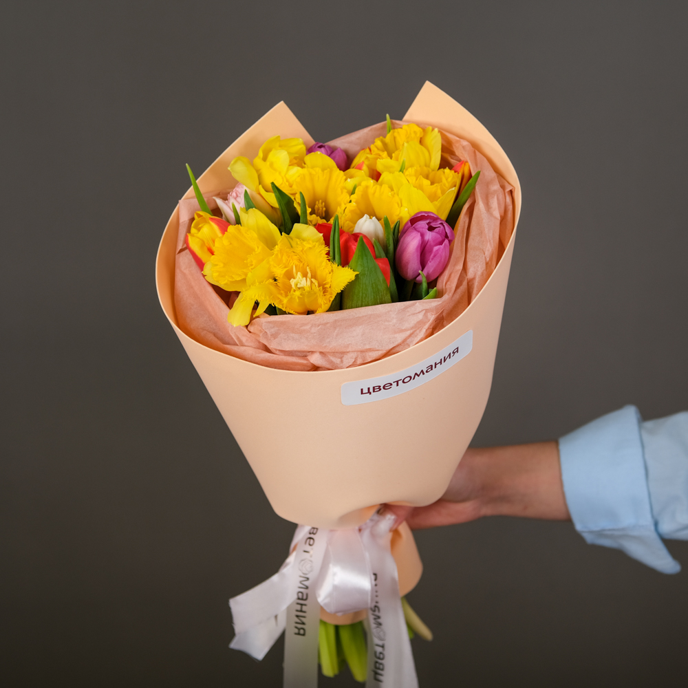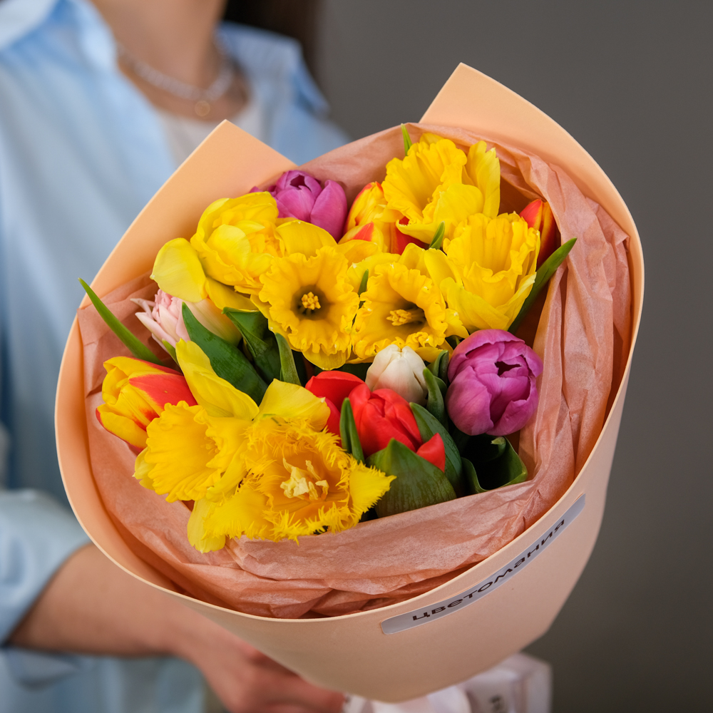 нарцисс 7, тюльпан 8, упаковка, тишью, лента