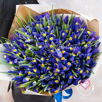 тюльпан 10, ирис 11, нарцисс 7, эвкалипт парвифолия 2, упаковка, лента