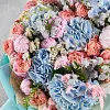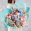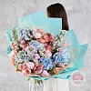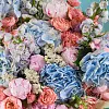 гортензия 5, дельфиниум 2, роза кустовая джульетта 10, пион премиум 7, статица 4, упаковка, лентаКомплектация: