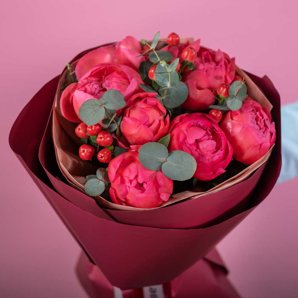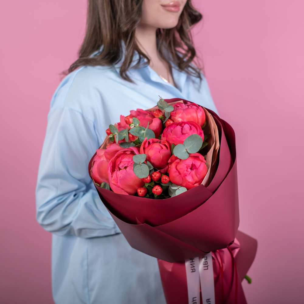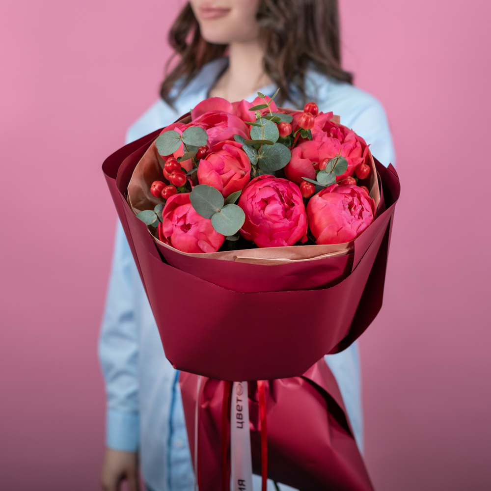 пион 7, гиперикум 3, эвкалипт 1, упаковка, лента