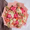 пион премиум 5, роза мадам бомбастик 5, роза эквадор 50 см 9, эустома 5, гвоздика голландия 5, маттиола 5, пистач 5, упаковка, лентаКомплектация: