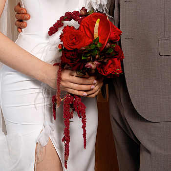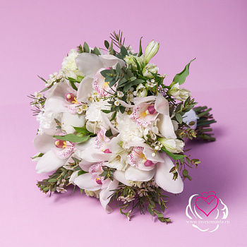 Заказ на свадебный букет принимается за 2 недели до даты события. К букету можно заказать бутоньерку за дополнительную стоимость - 700 рублей.