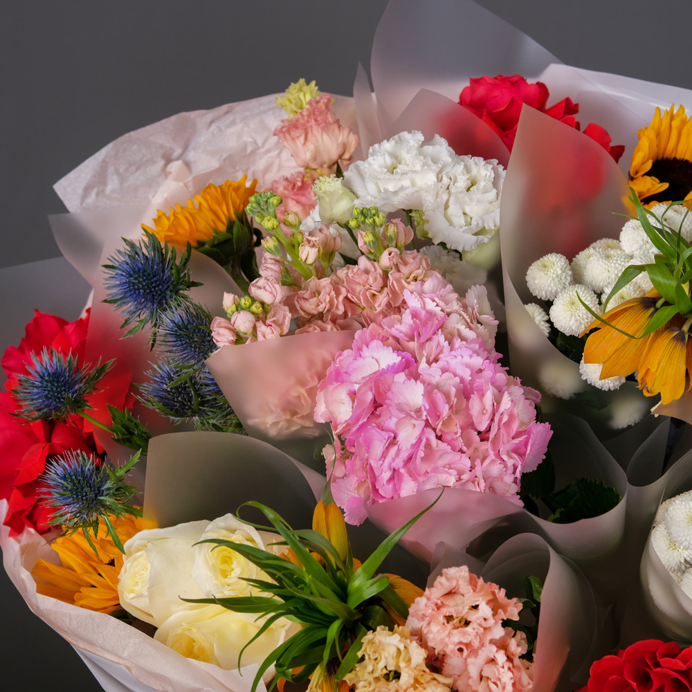 Упакуем букет, с полной защитой от перепадов погоды (жара, мороз, ветер или дождь - заказывайте букет в любую погоду)!
